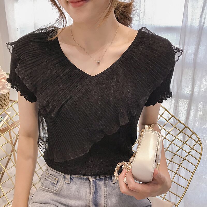 4カラー メッシュ シアー Vネック シャツ ブラウス *bl168