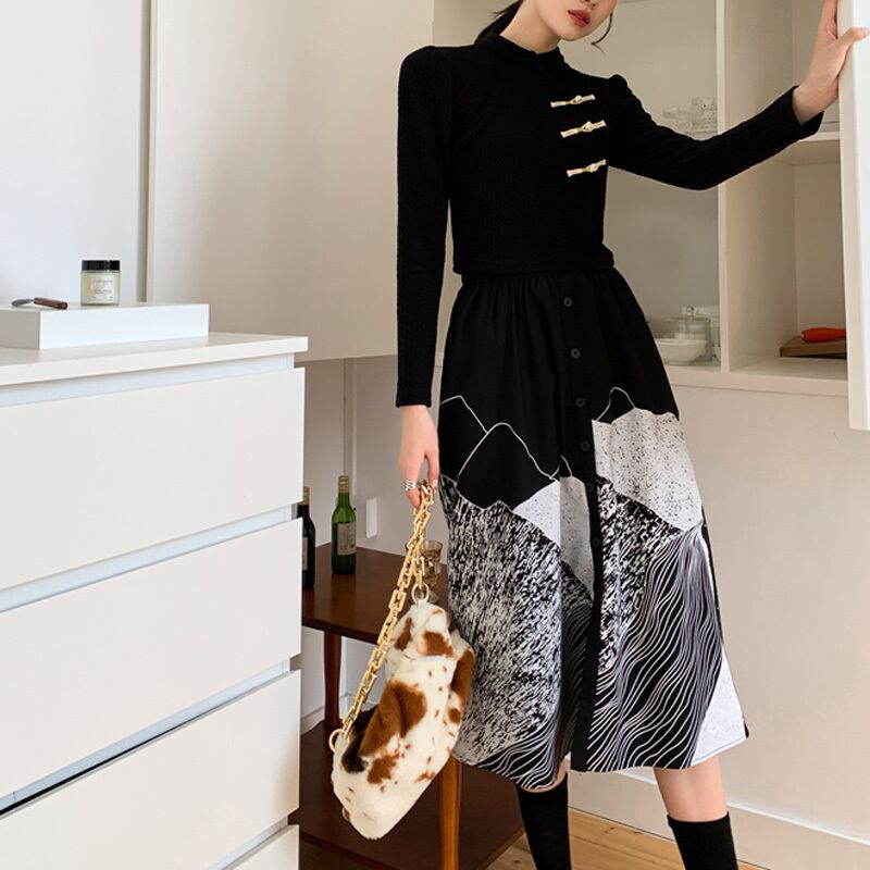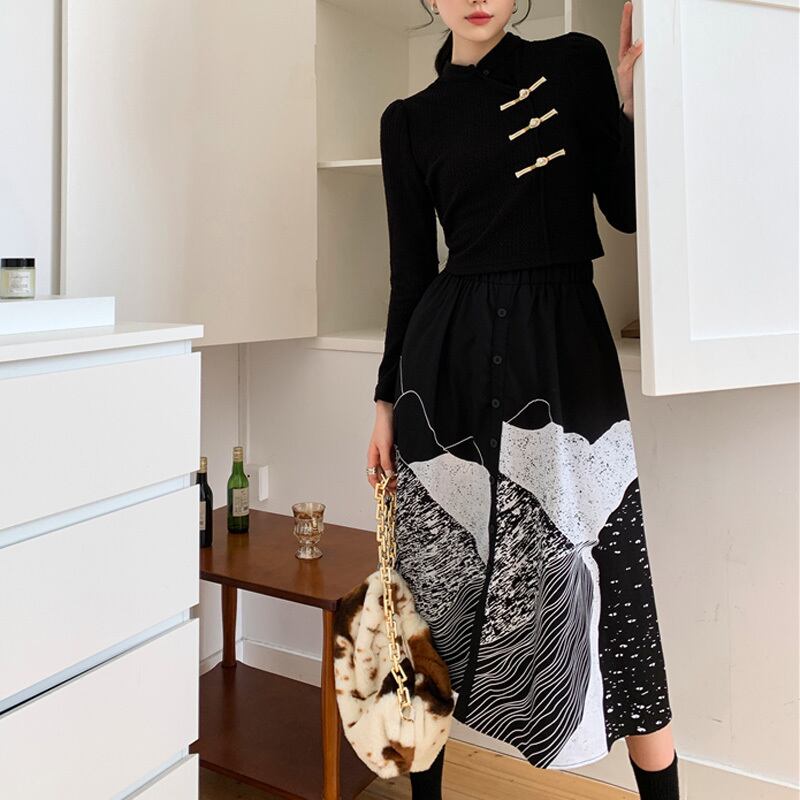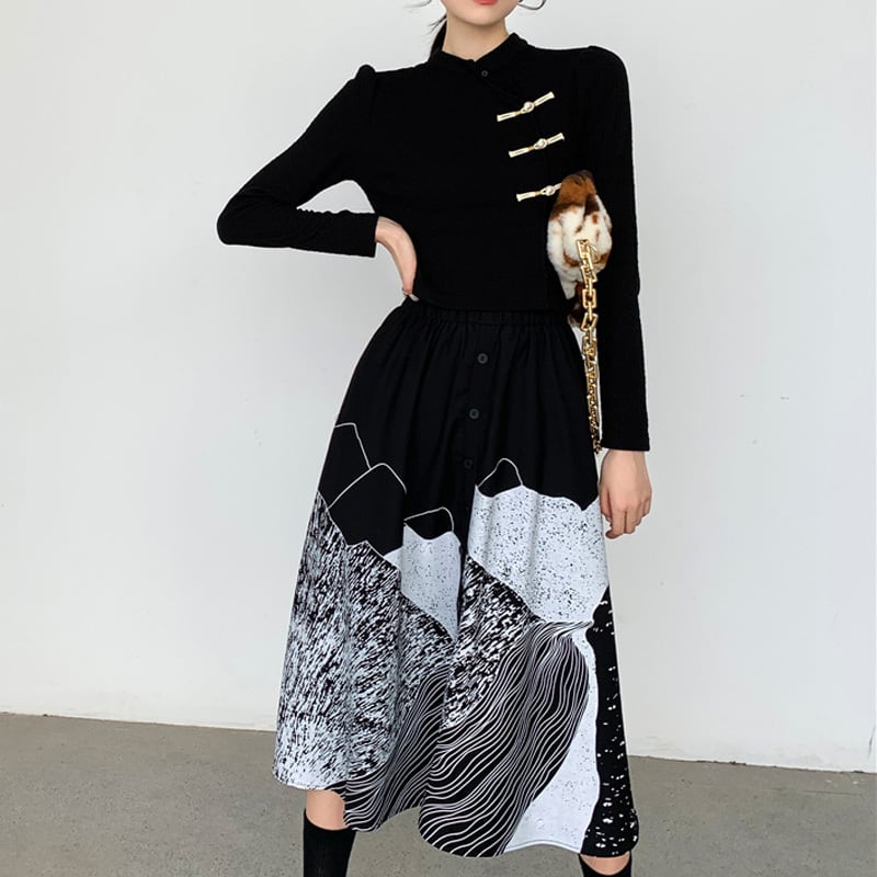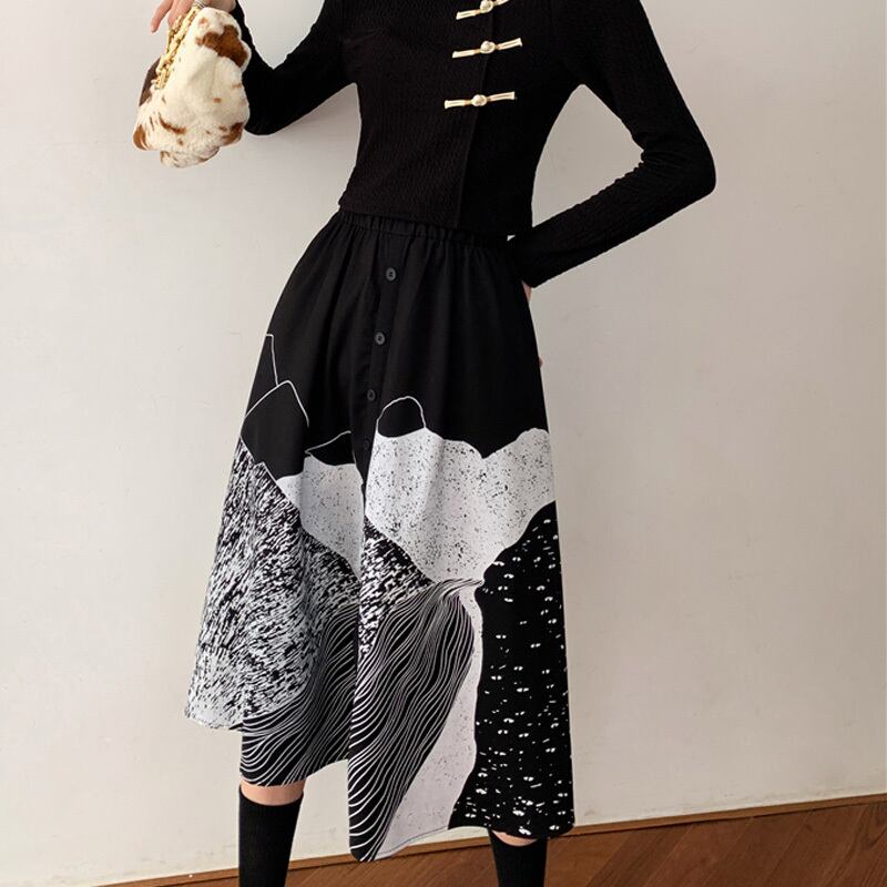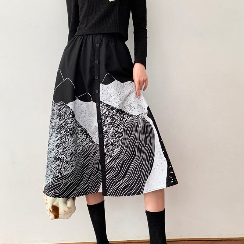 ハイウエストと黒の引き締め効果ですっきり見えも狙えるスカート。