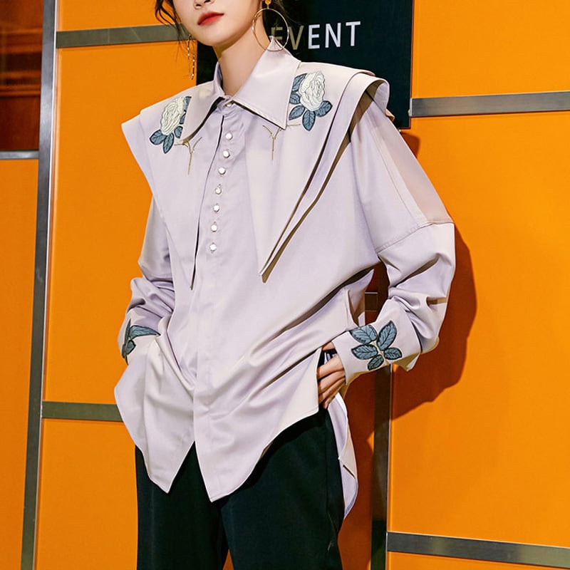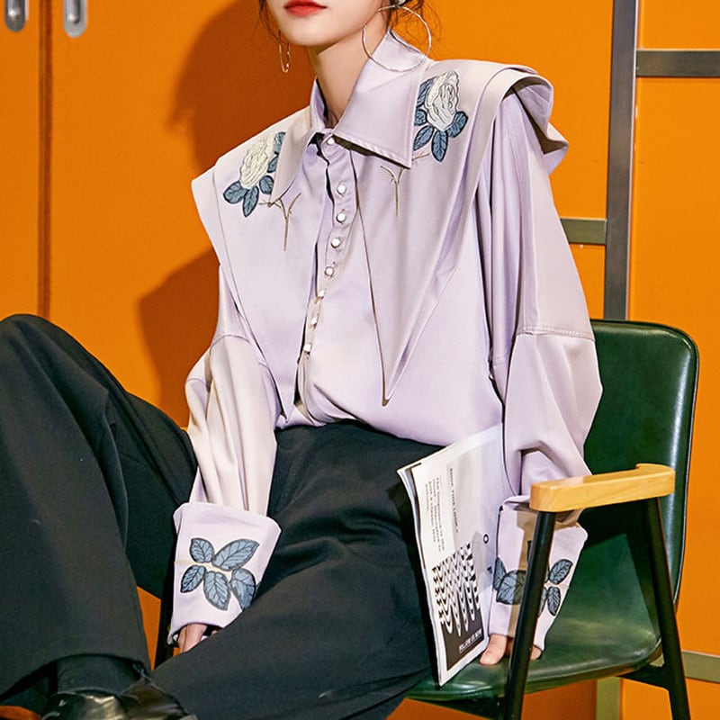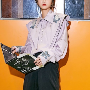 シック 薔薇 刺繍 シャツ ブラウス *bl171