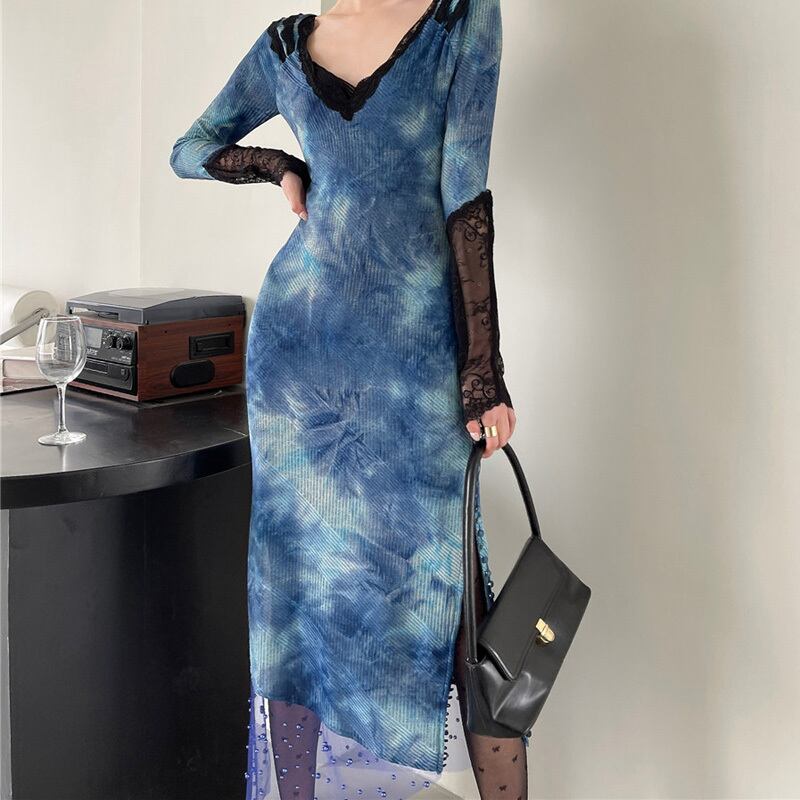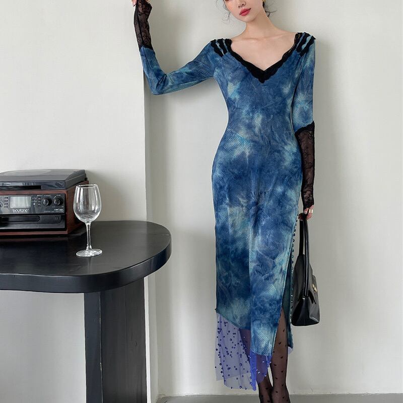 袖のレースや裾の透け感、スリットが入っていたり、細部まで凝った一着。