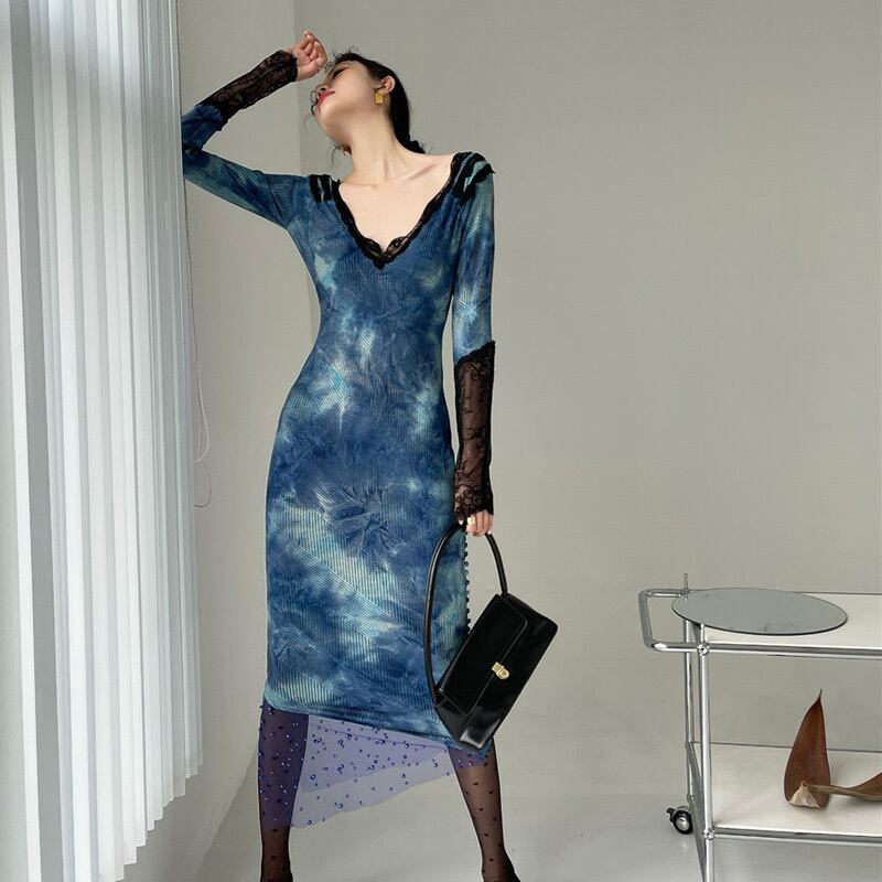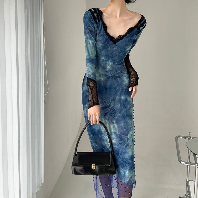 レース シアー コーデュロイ ドレス ワンピース *on187