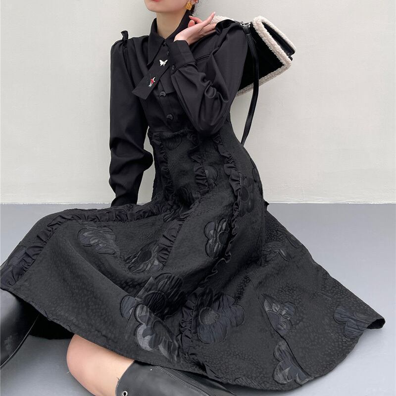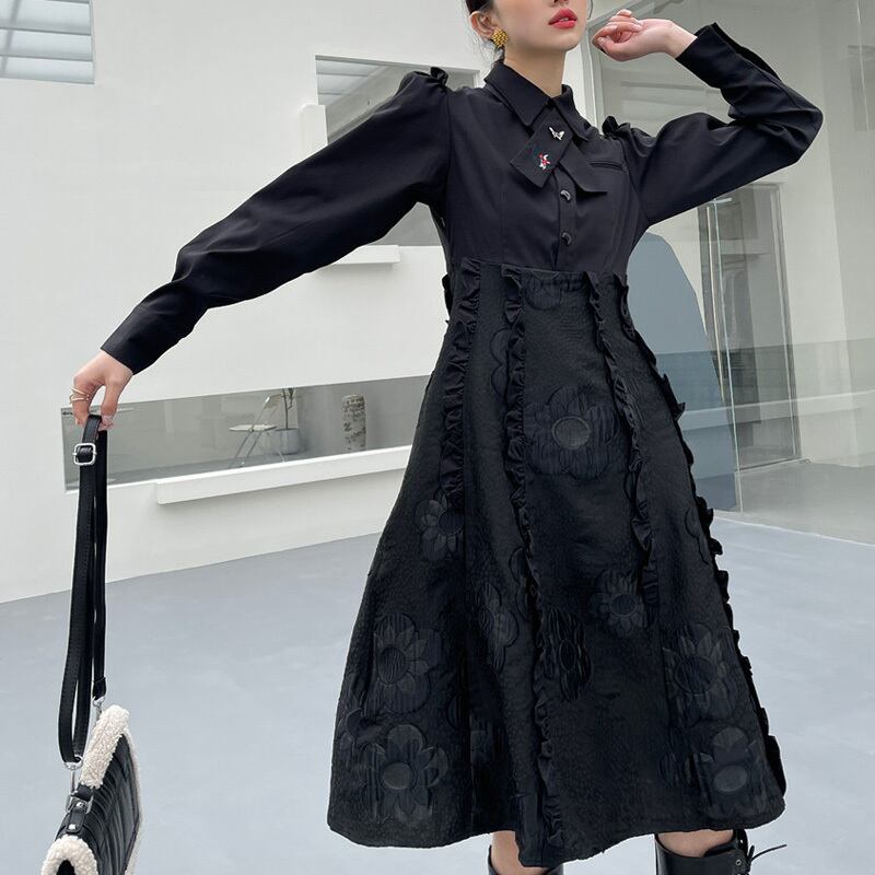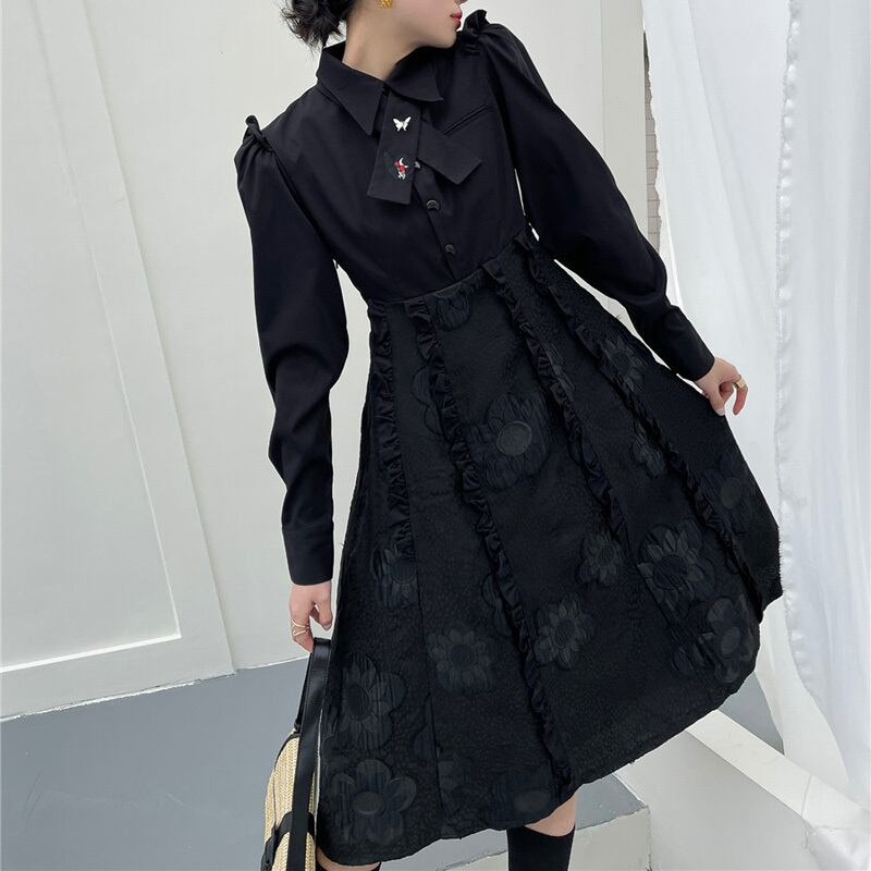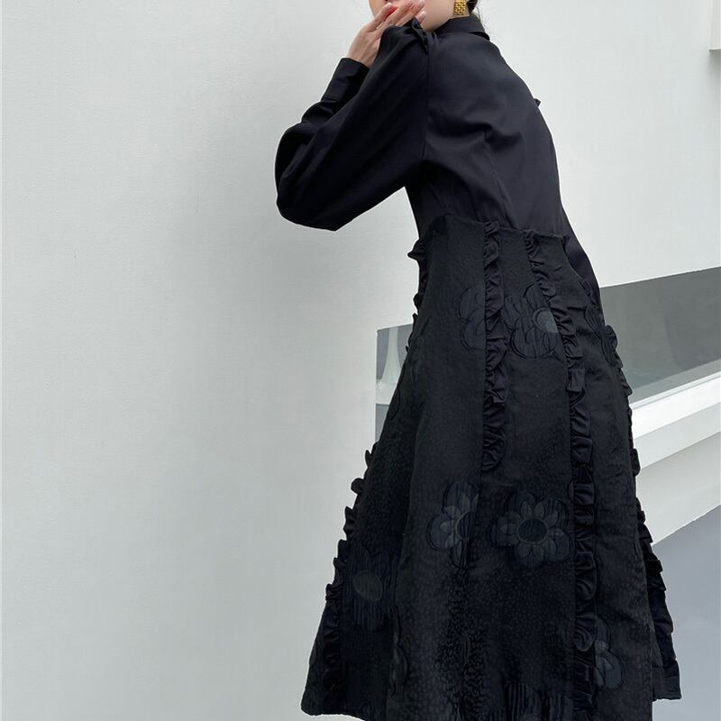 シック 刺繡 フリル シャツワンピース *on188