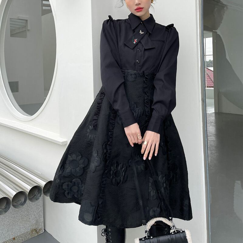 スカート部分の立体的なお花の刺繍がアクセントになっています。