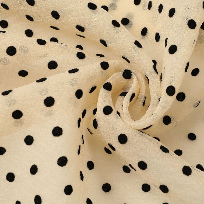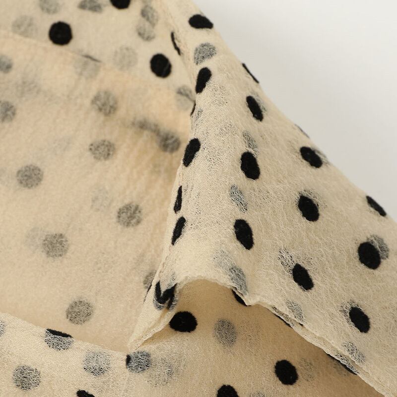 流行に左右されないドット柄で、ウエストで結べるようになっています。