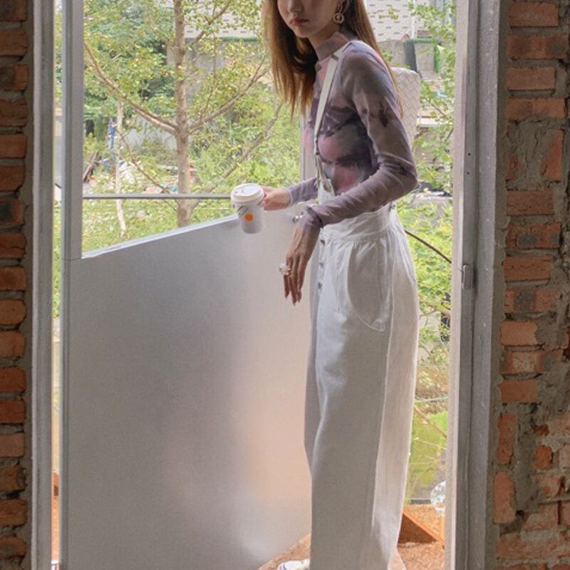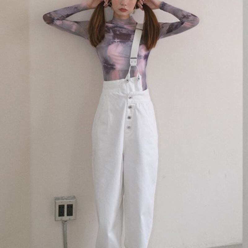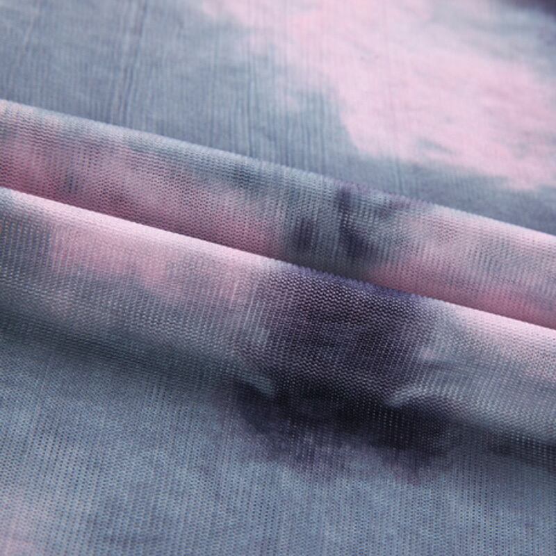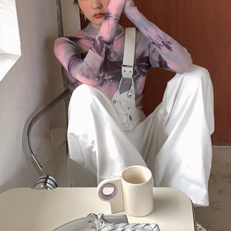 絞り染め風 ハイネック メッシュ 長袖 シャツ *bl181