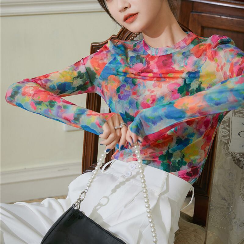 ペイント フラワー 長袖 シャツ ブラウス *bl185