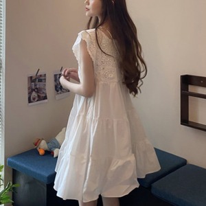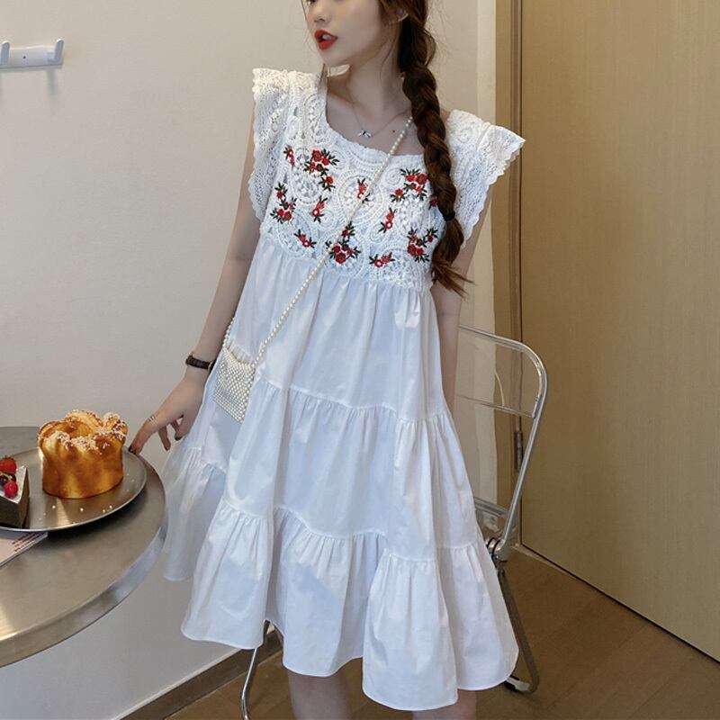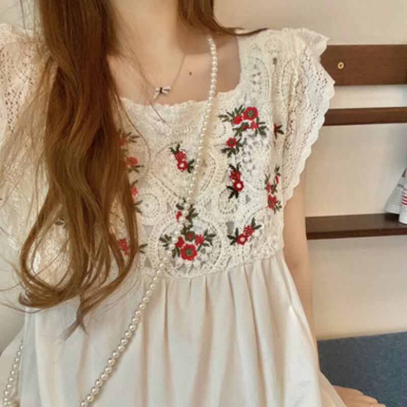 胸元に繊細なレースとお花の刺繍が施されたワンピースです。