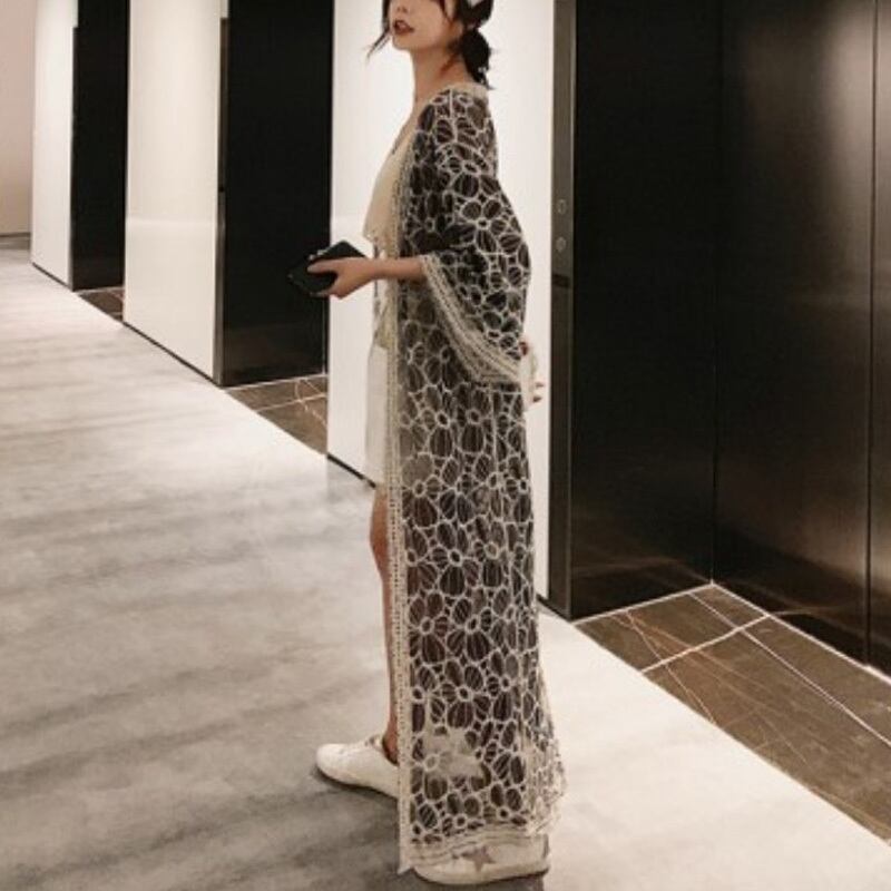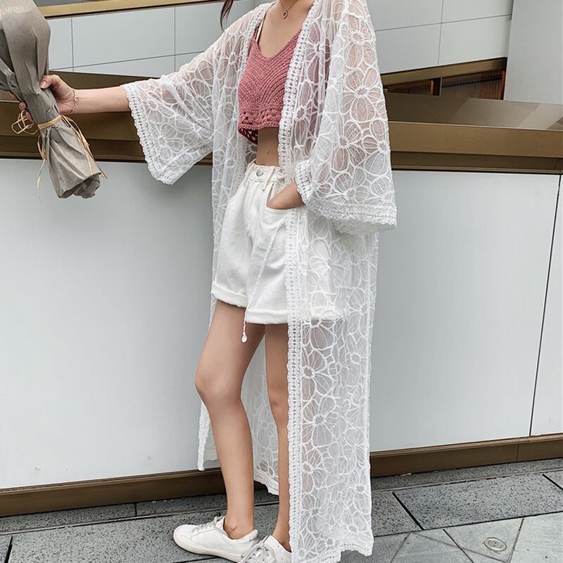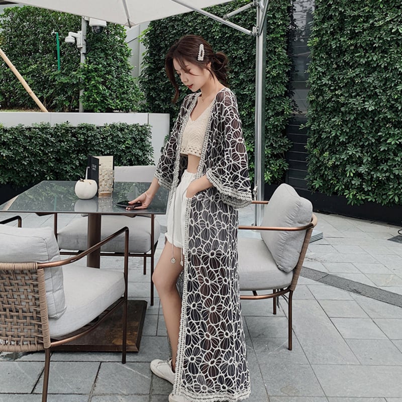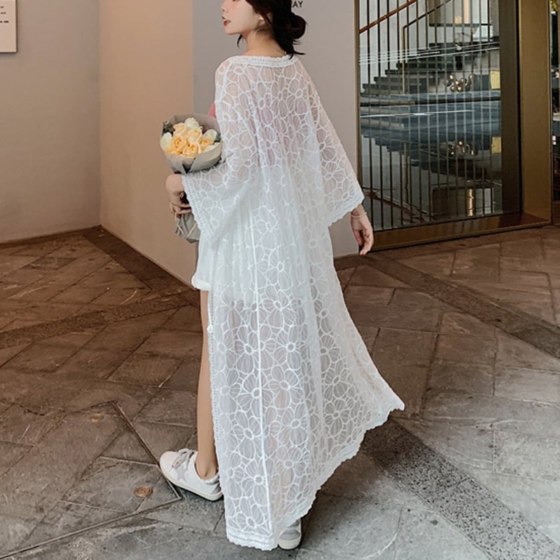 2カラー レース フローラル シアー カーディガン *ja037
