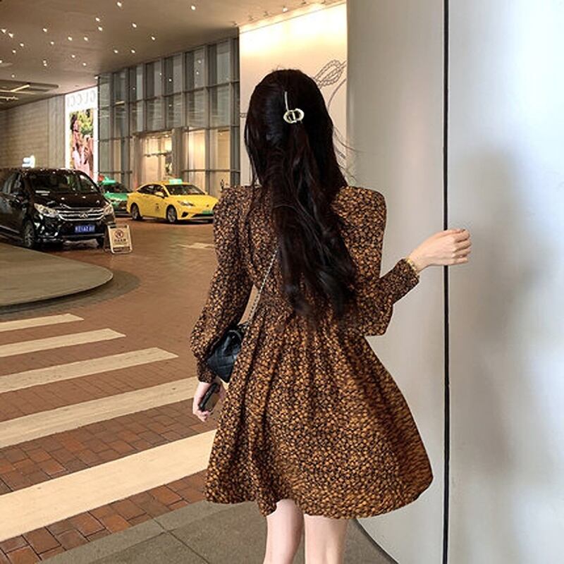 レトロでな花柄のワンピースです。