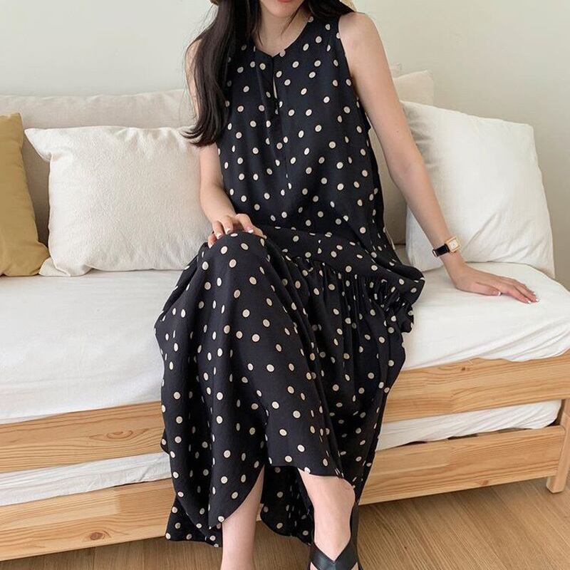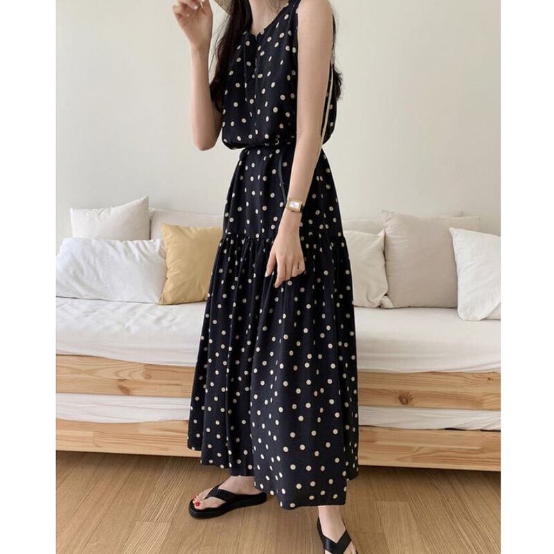 2カラー 水玉 ノースリーブ ロング ワンピース *on195