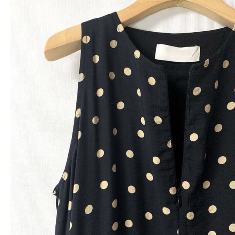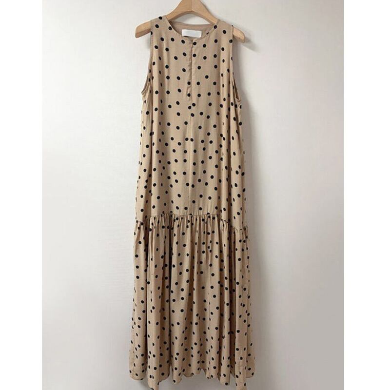 流行に左右されないドット柄にノースリーブで涼し気なワンピース。
