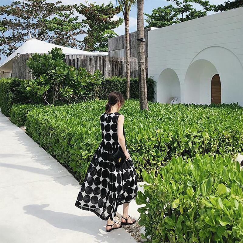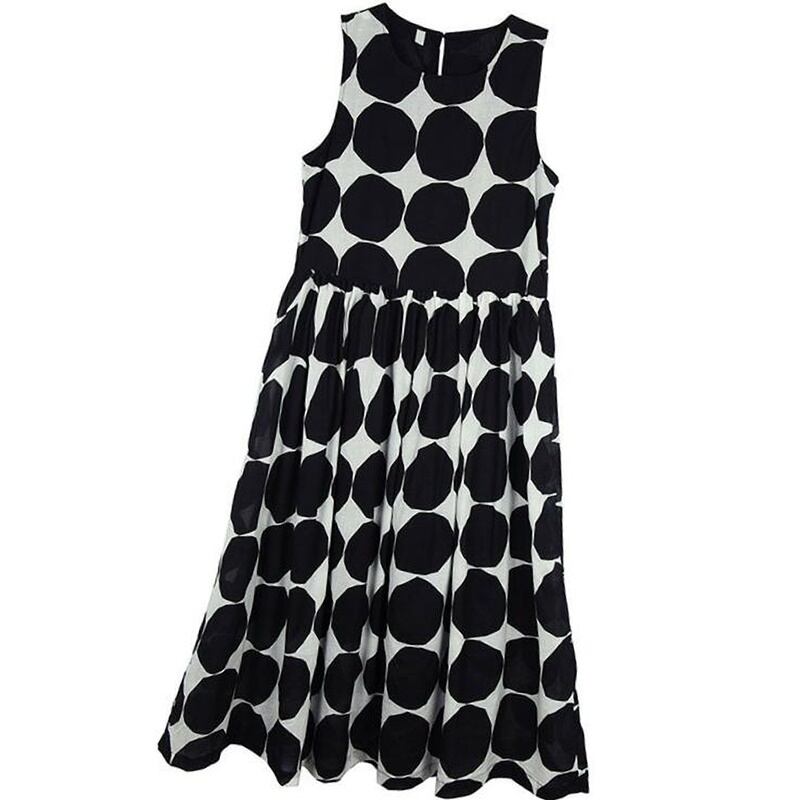 2カラー ドット ラウンドネック ノースリーブ ロングワンピース *on196