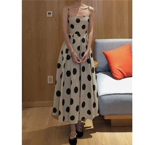 水玉 ノースリーブ ハイウエスト ロング ワンピース *on203