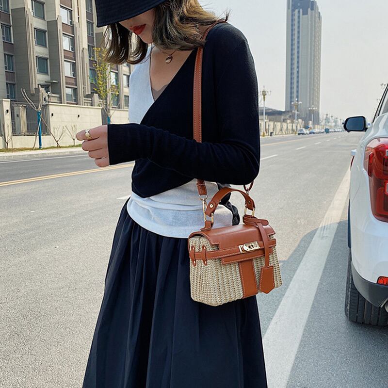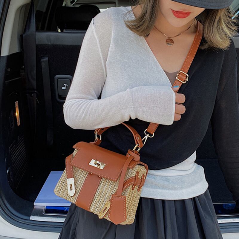 5カラー 2way 編み込み スクエア ショルダーバッグ *ba025