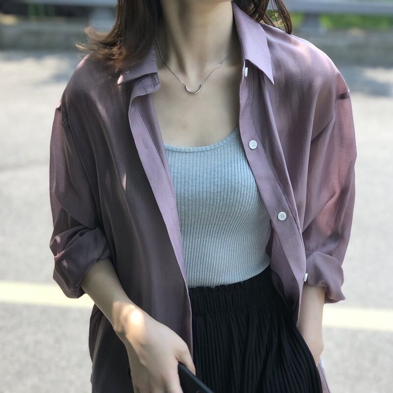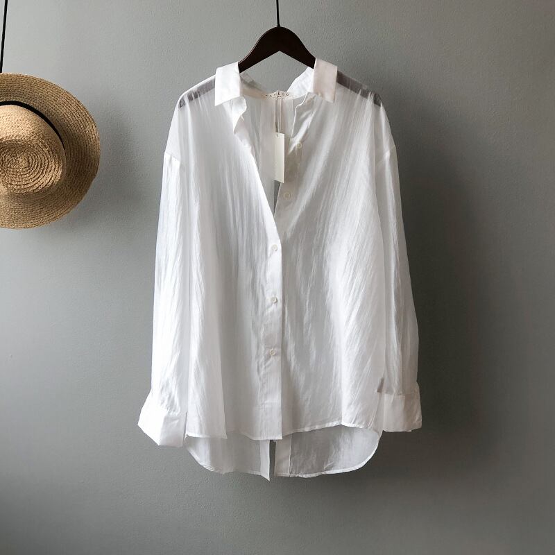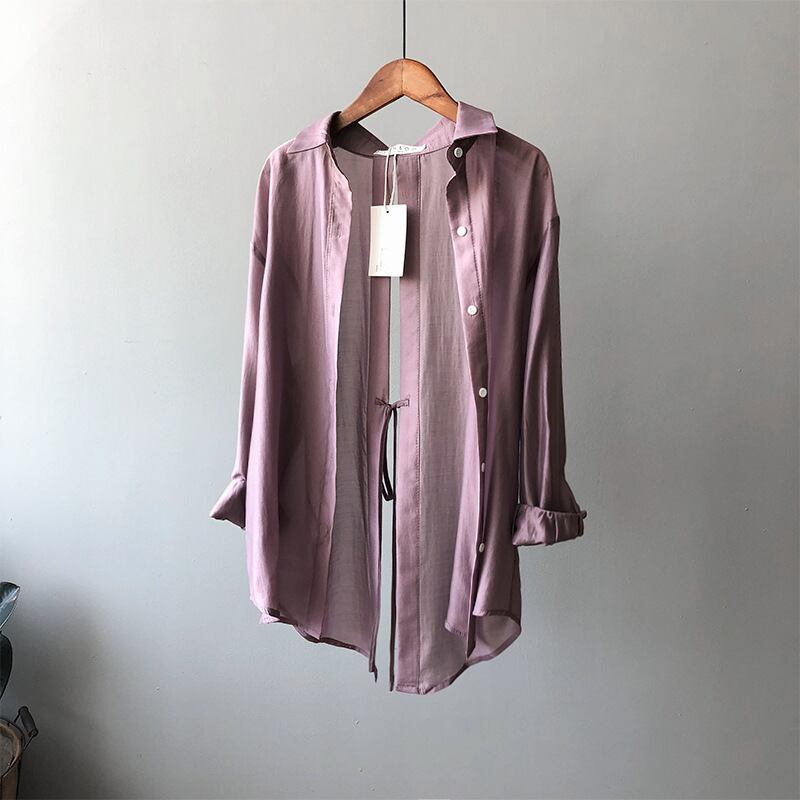 4カラー シアー バックオープン リボン シャツ ブラウス *bl195