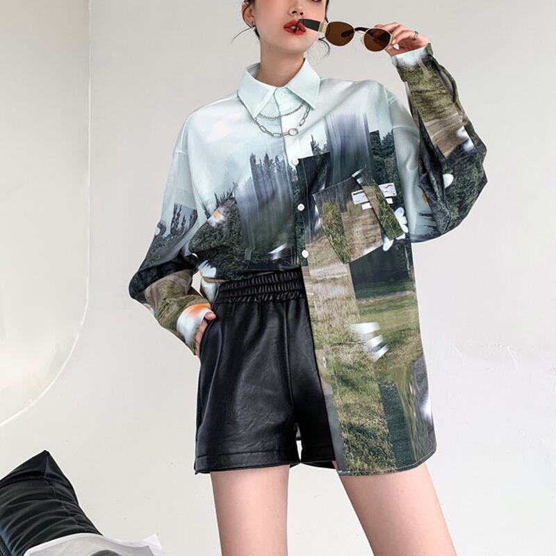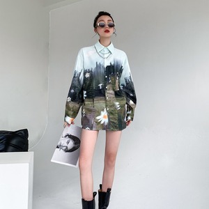写真 森 ペイント 長袖 シャツ ブラウス *bl196