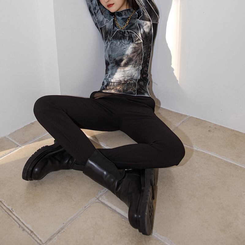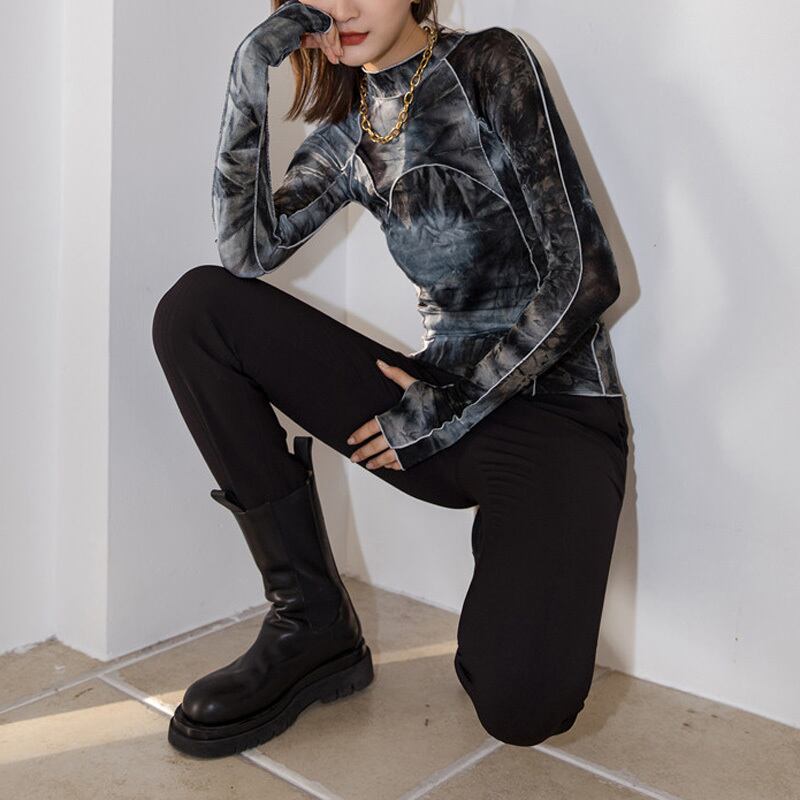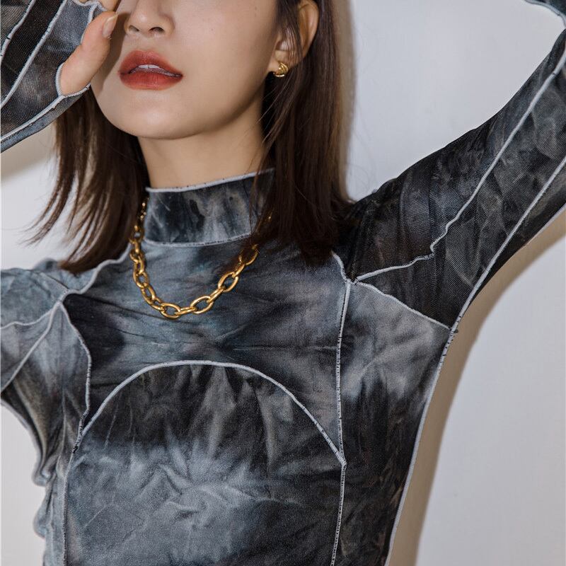 絞り染め風 ライン タイト 長袖 シャツ *bl198