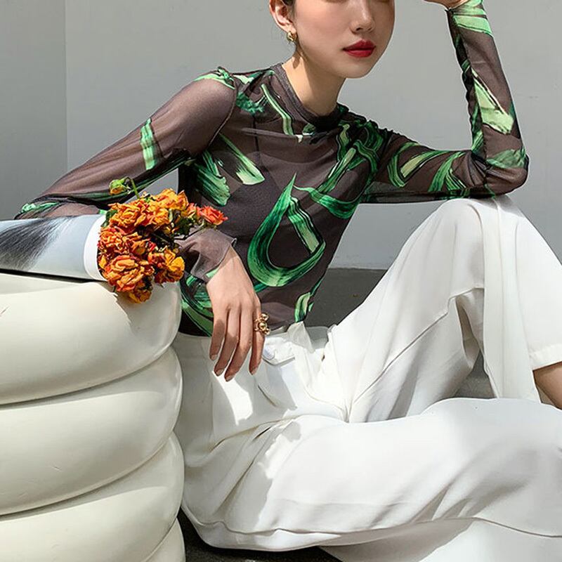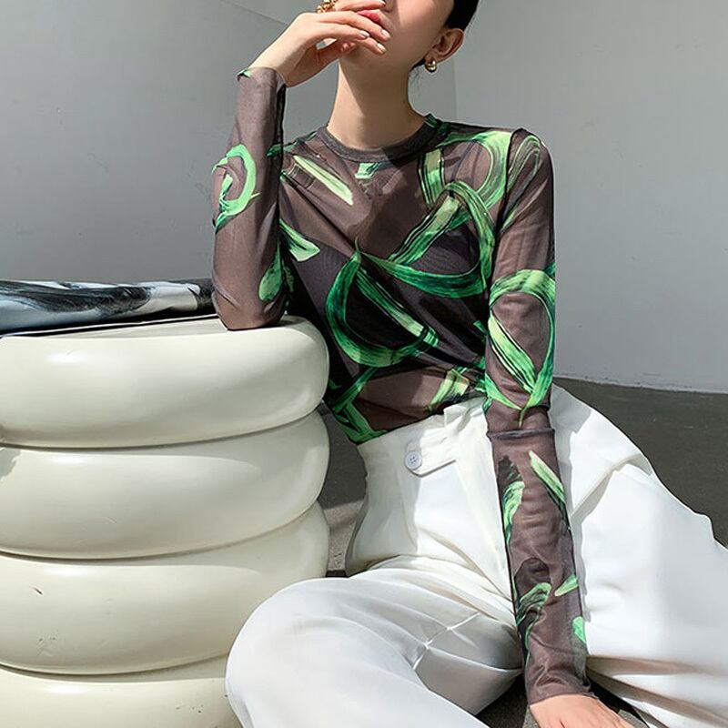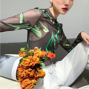 ペイント シアー メッシュ 長袖 シャツ *bl199