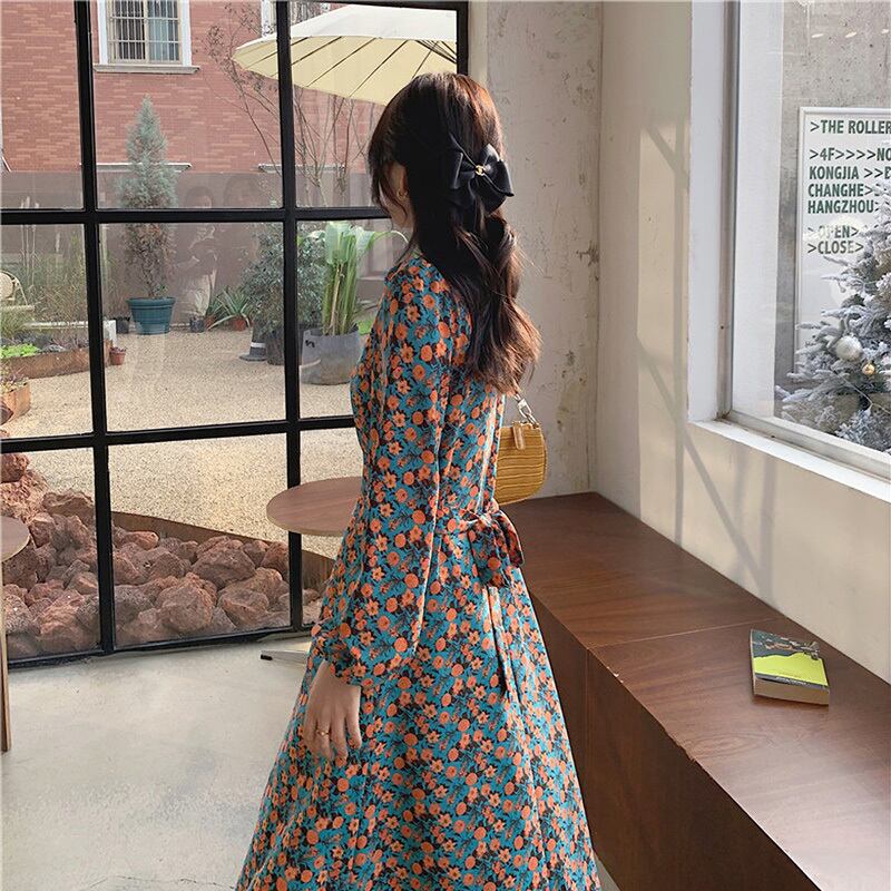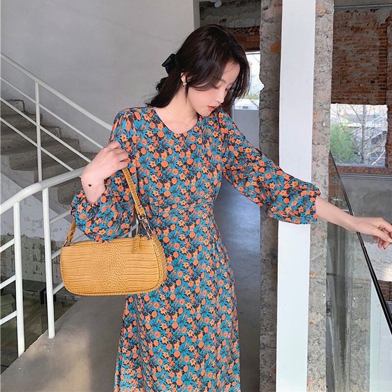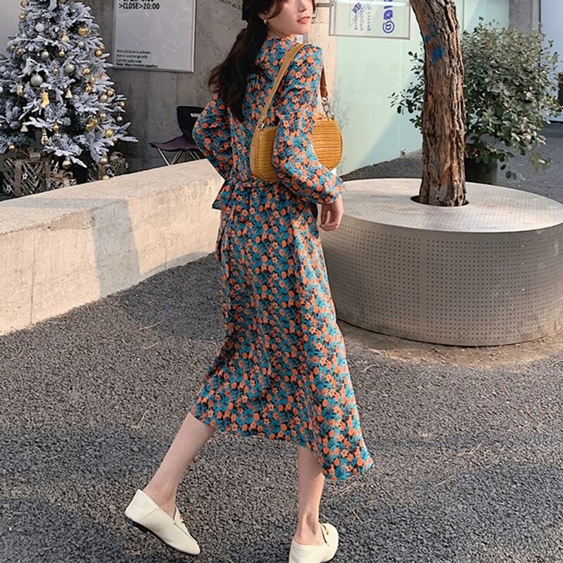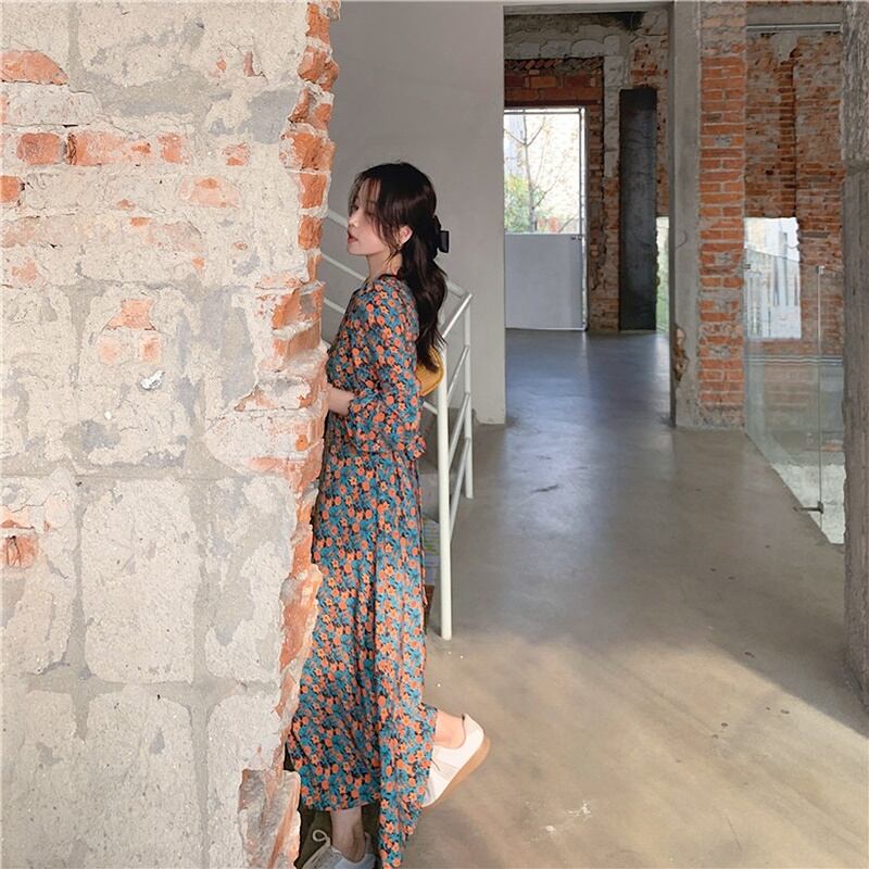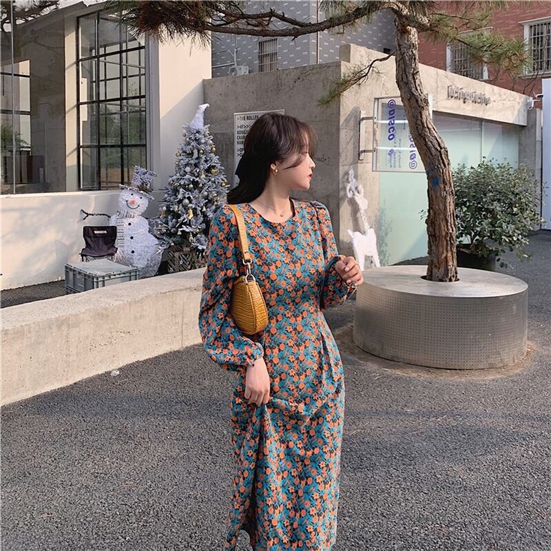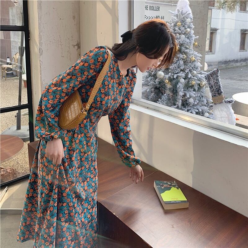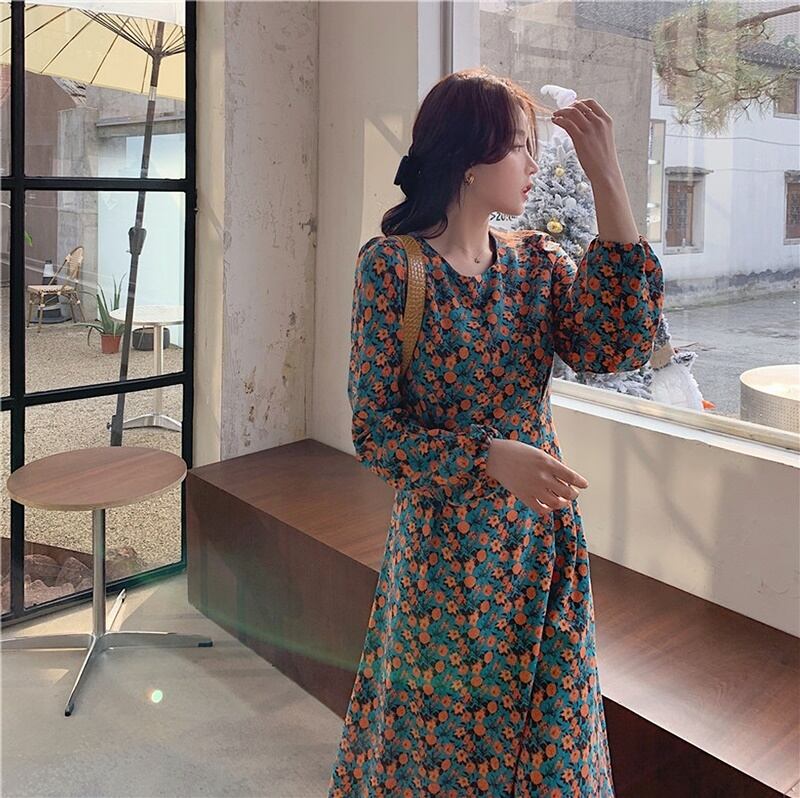 レトロな小花柄のワンピースです。