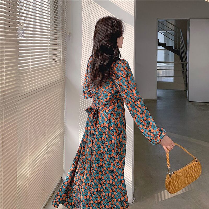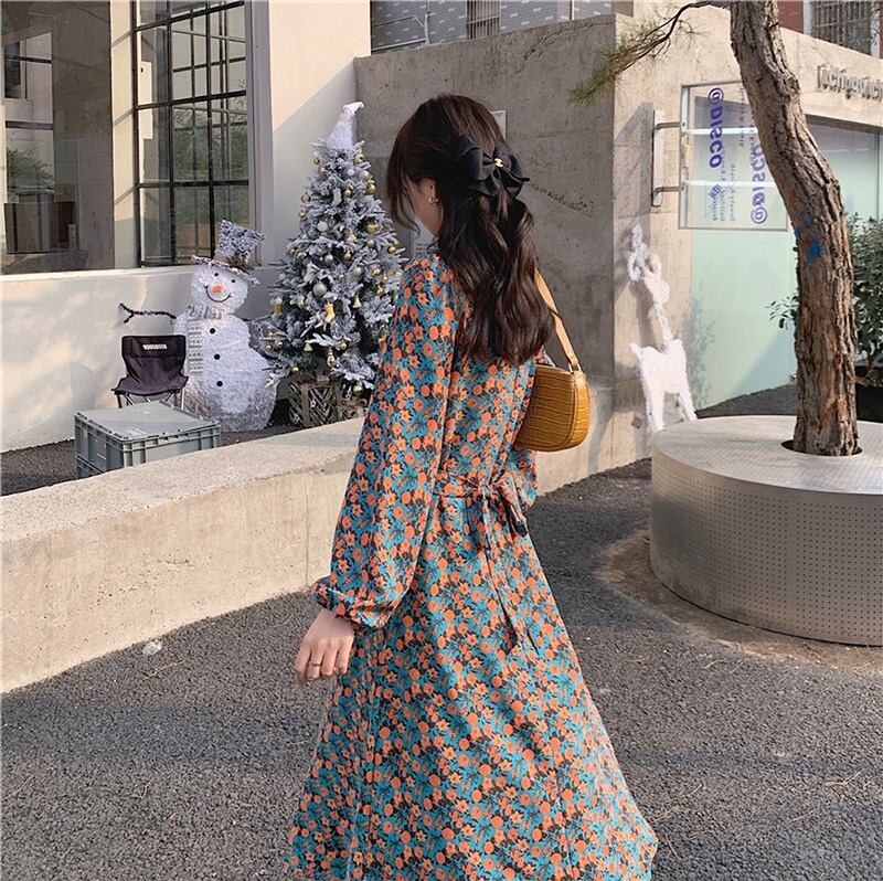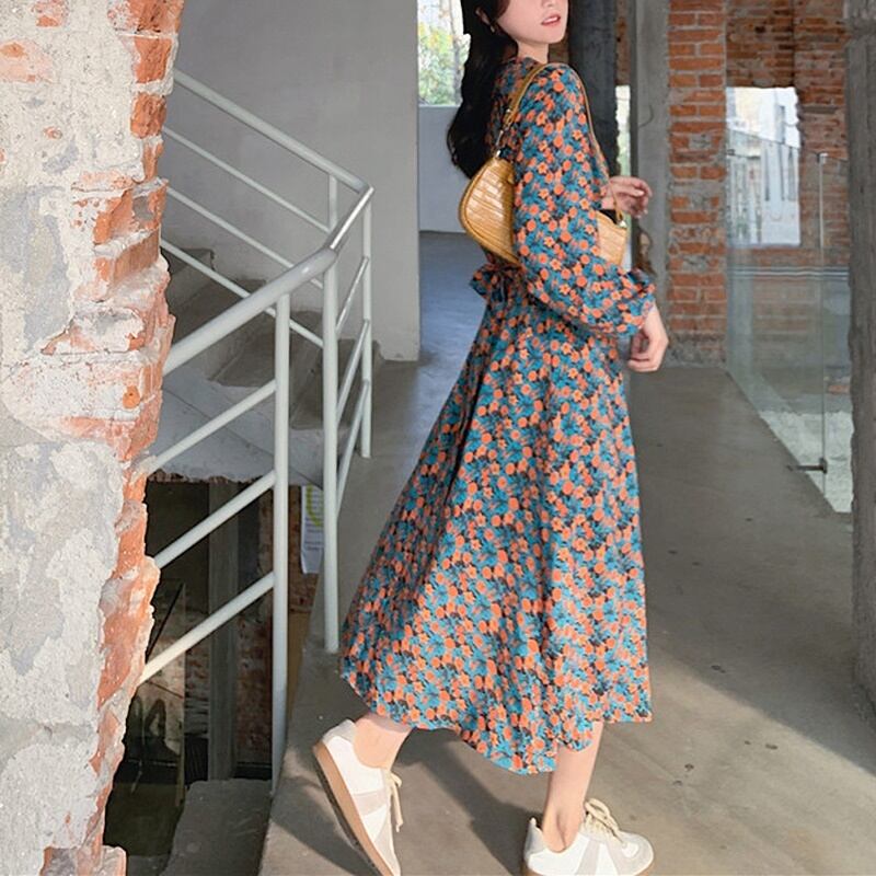 フローラル バックリボン ラウンドネック ワンピース *on208