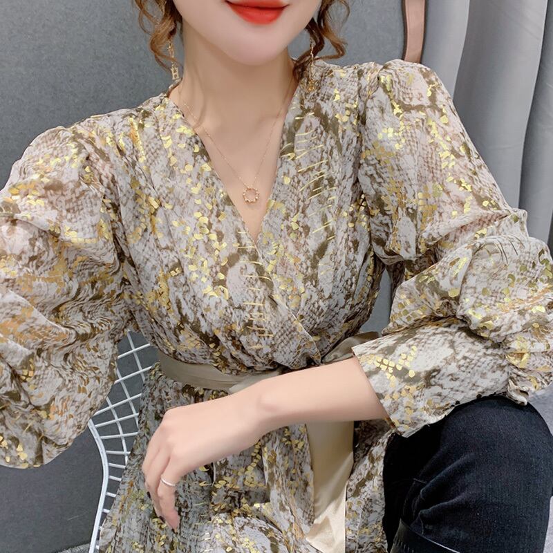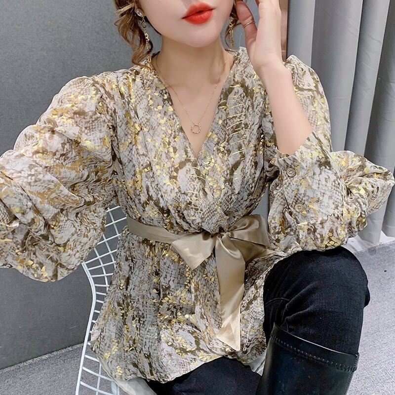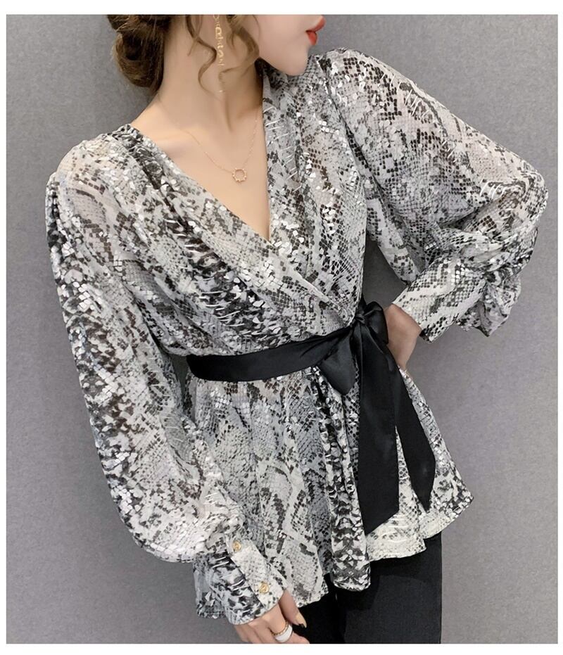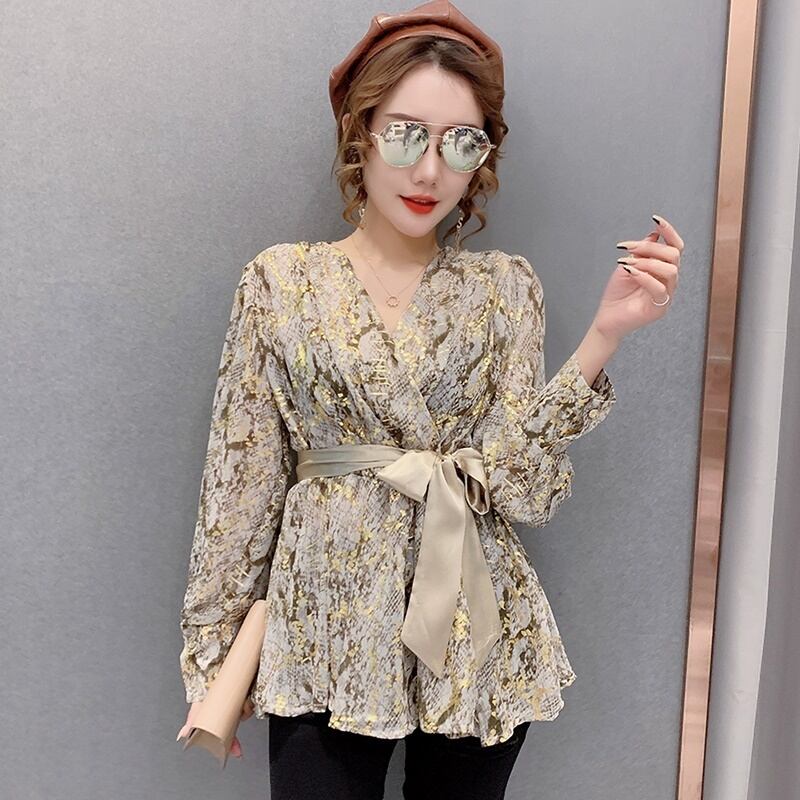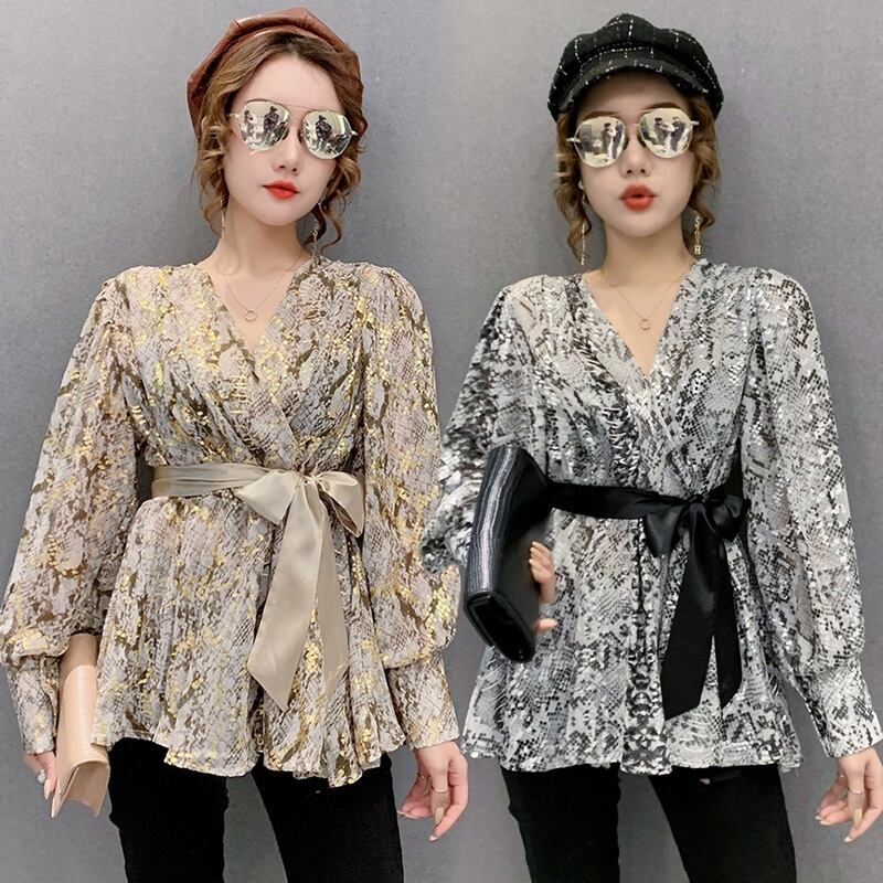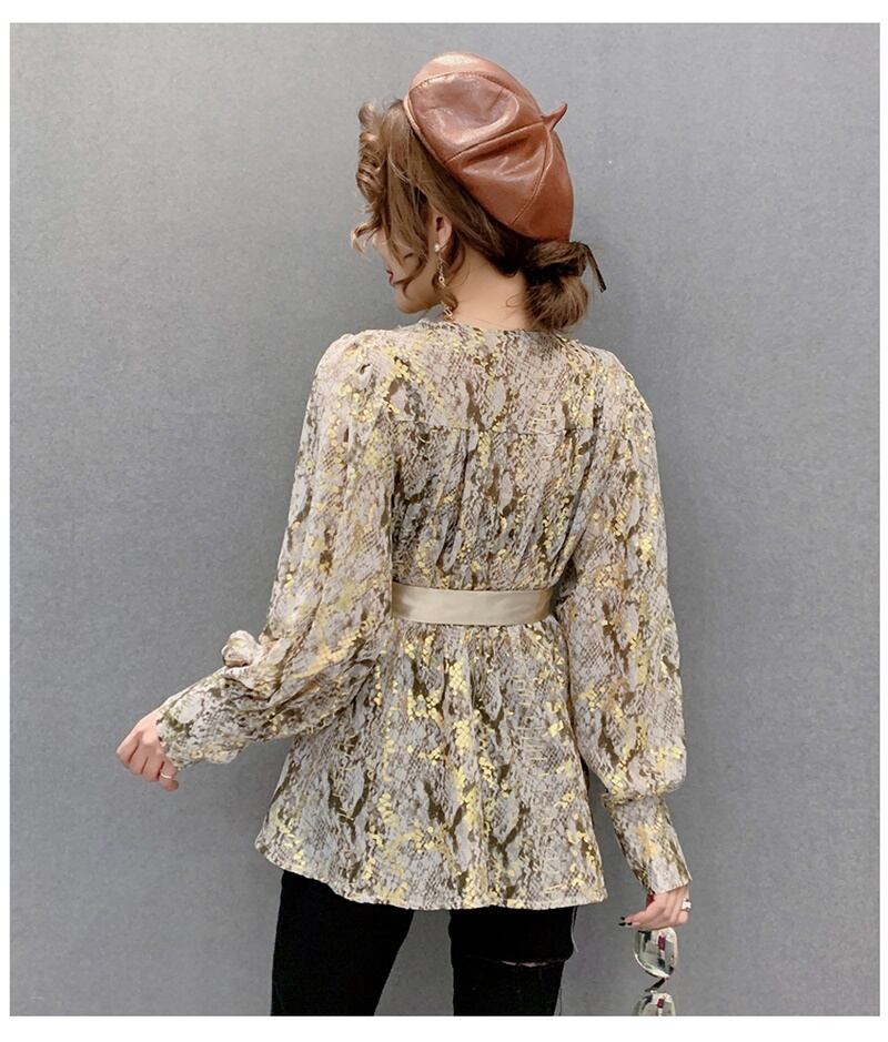 2カラー カシュクール パイソン柄 リボン シャツ ブラウス *bl202
