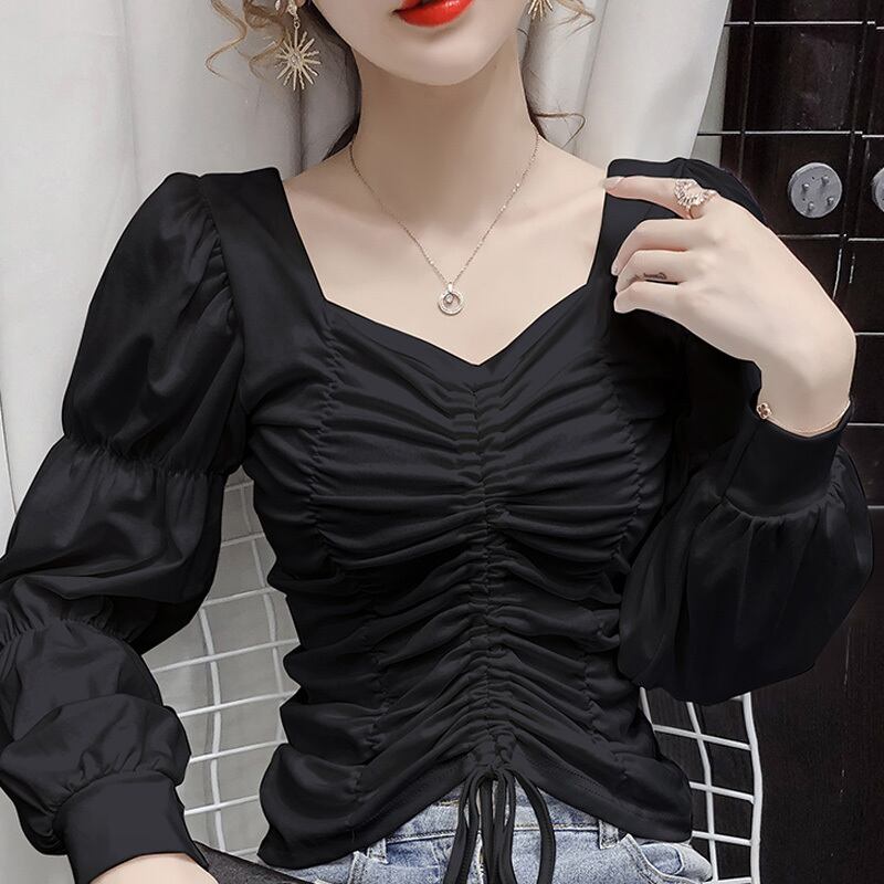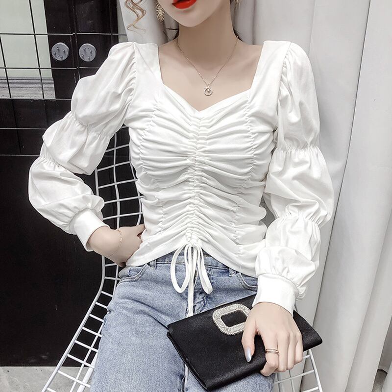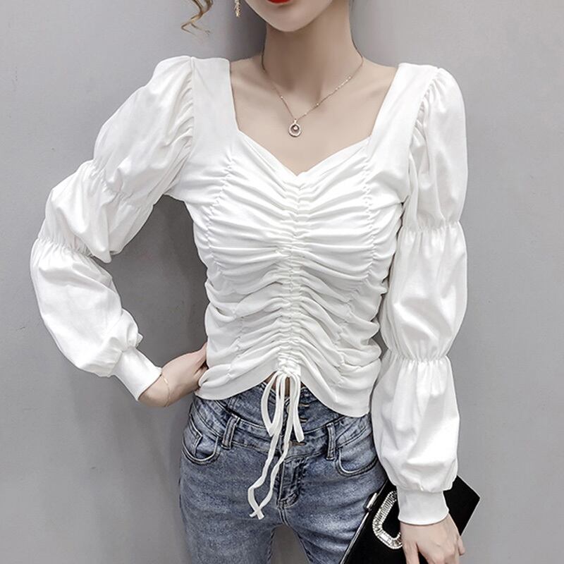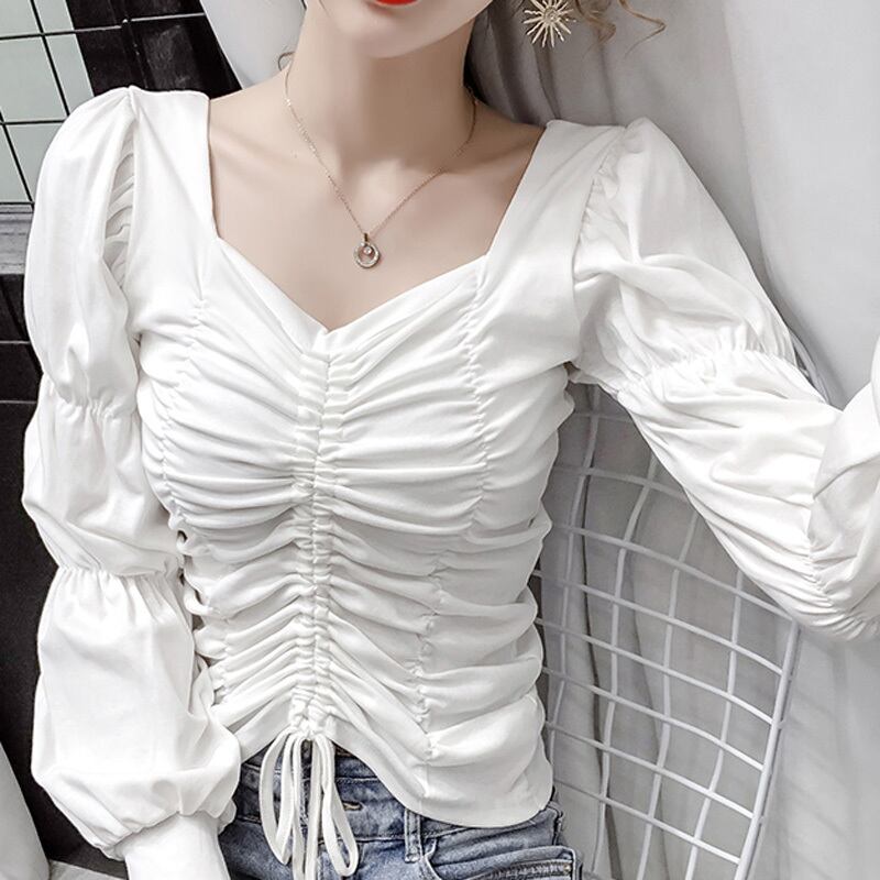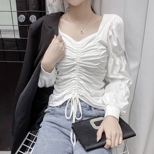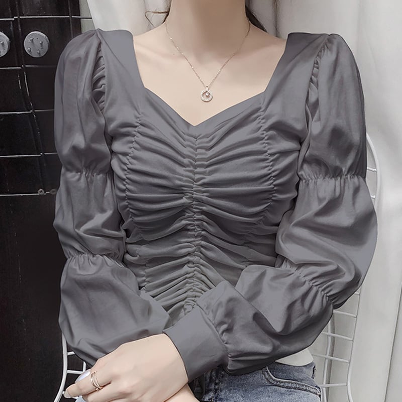 3カラー ギャザー パフスリーブ 長袖 シャツ ブラウス *bl208