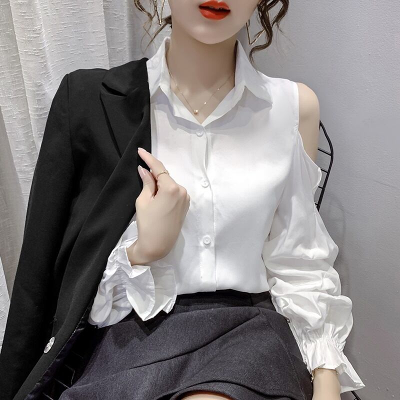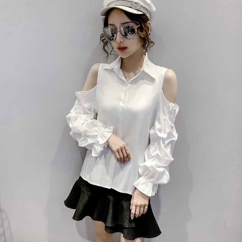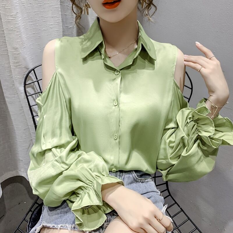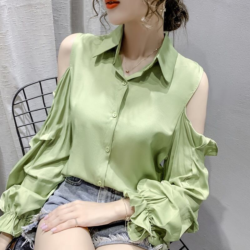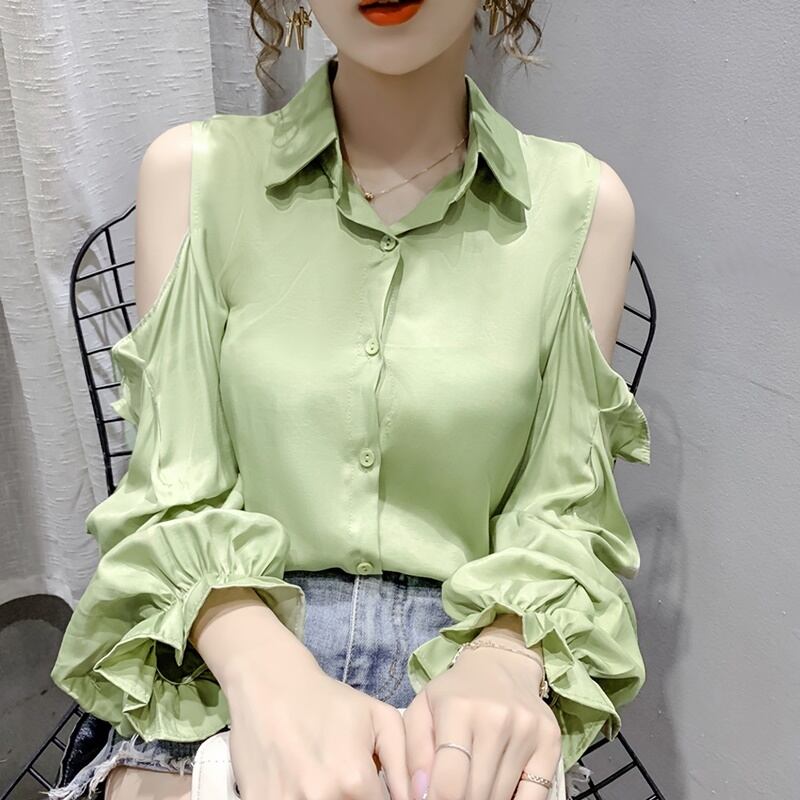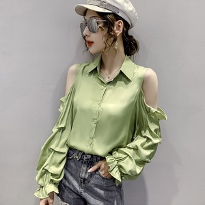 3カラー 肩出し シフォン フリル シャツ ブラウス *bl210