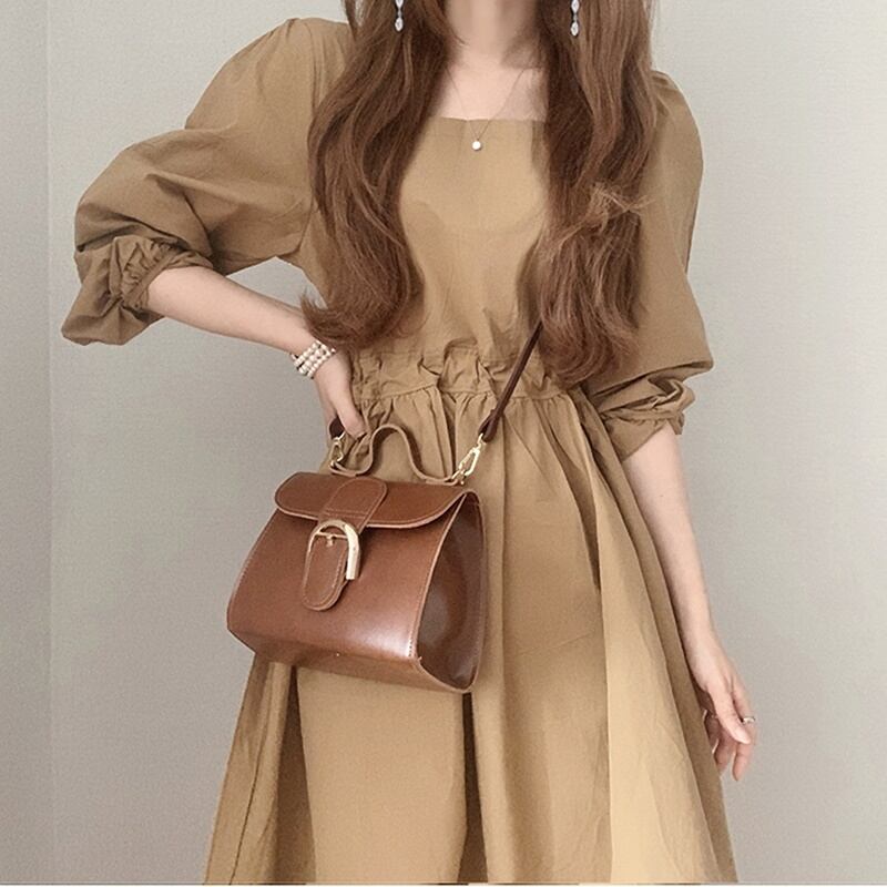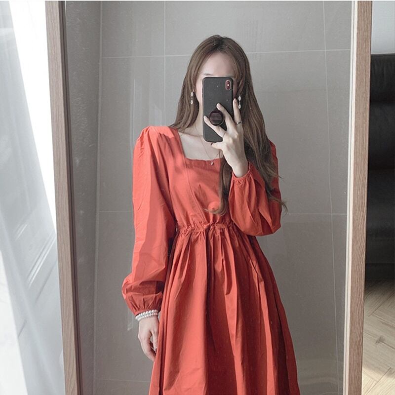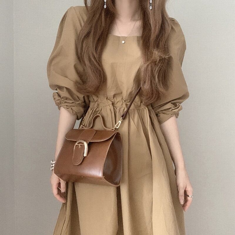 2カラー パフスリーブ スクエアネック ワンピース *on213