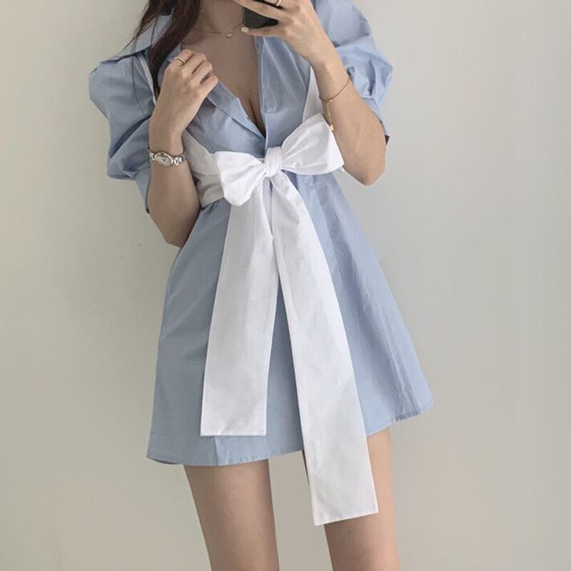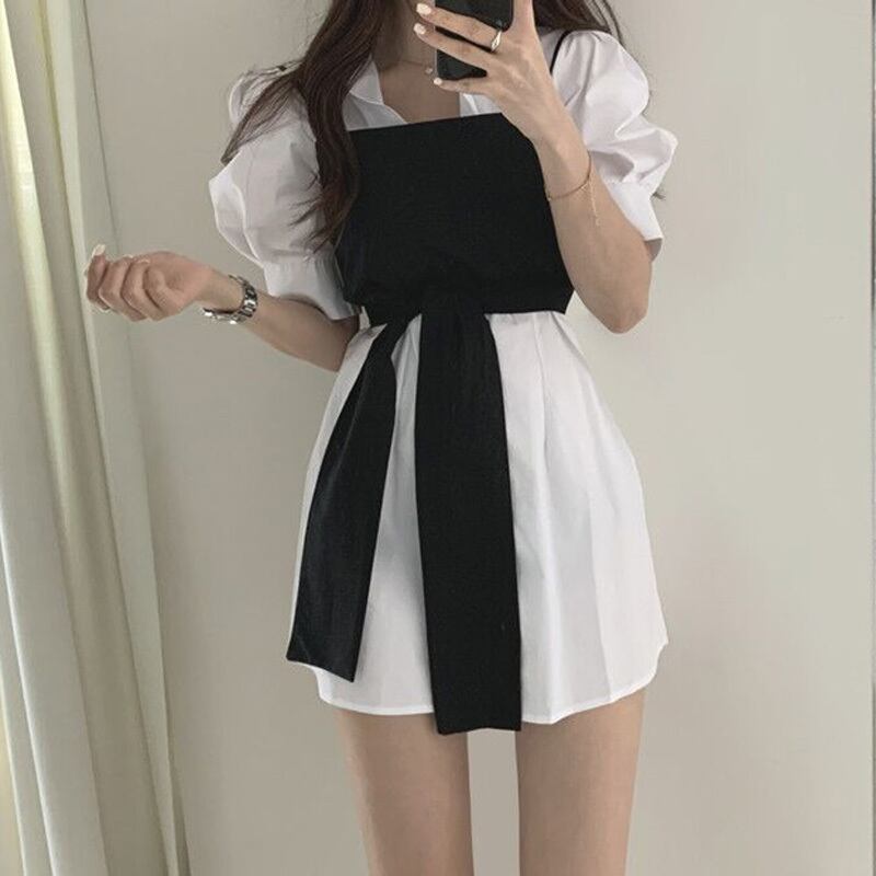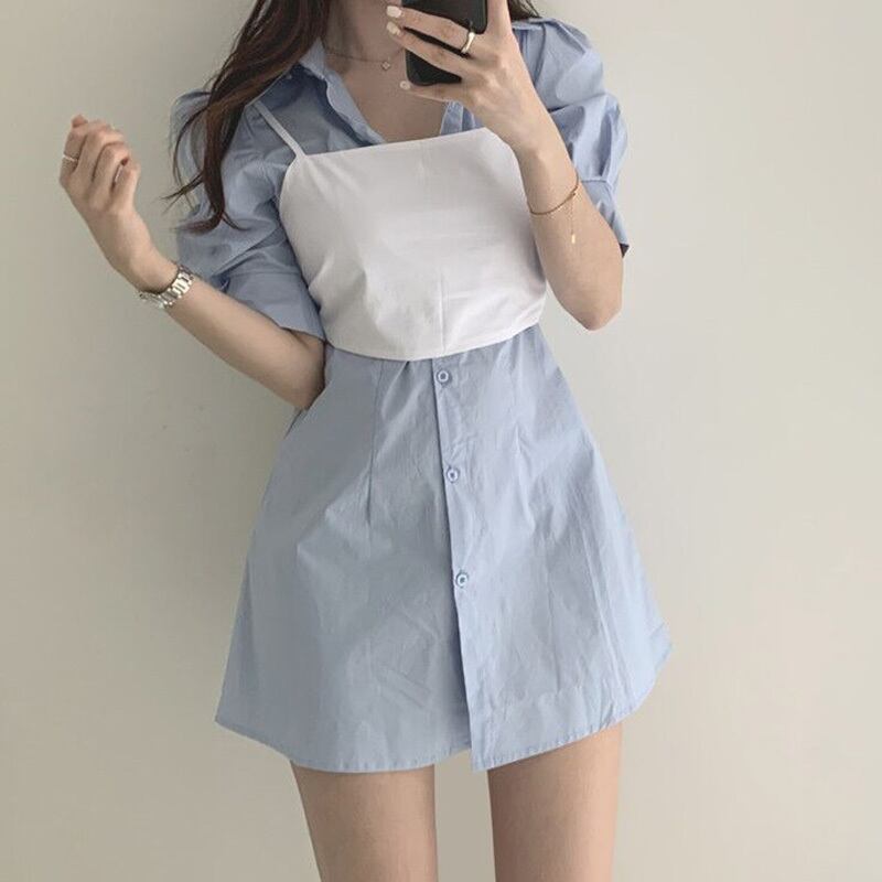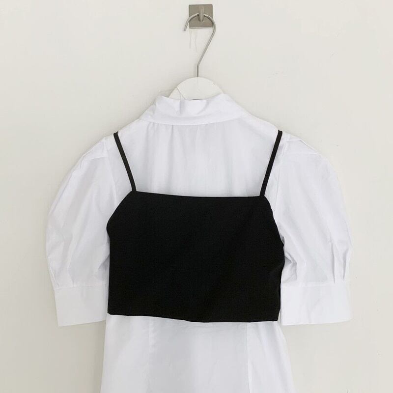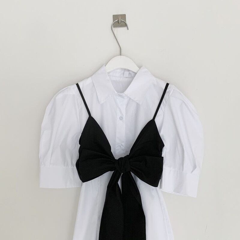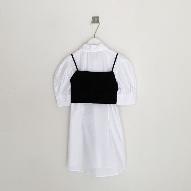 シャツワンピースにリボンのキャミソールがついたセットです。