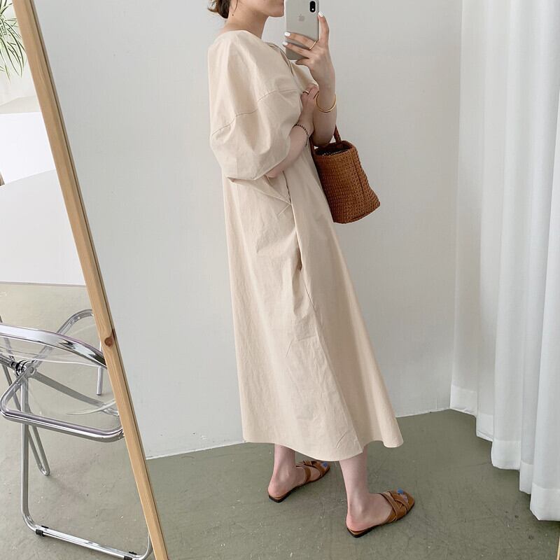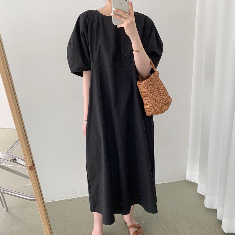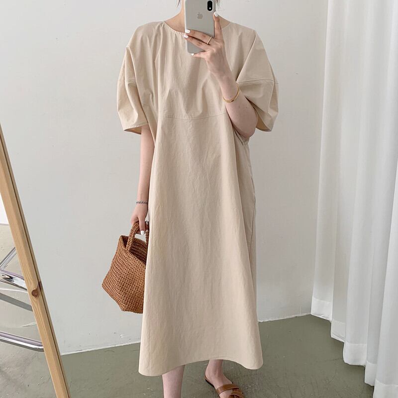 3カラー パフスリーブ ラウンドネック ワンピース *on215