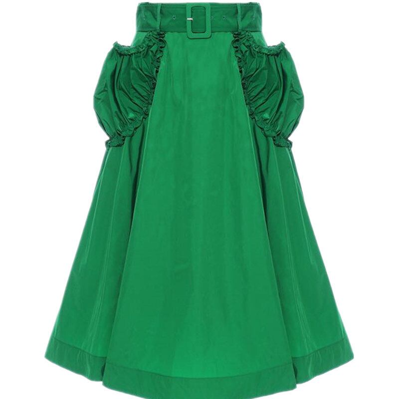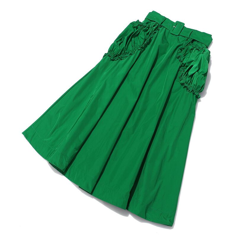 2カラー ギャザー ベルト Aライン スカート *sk090