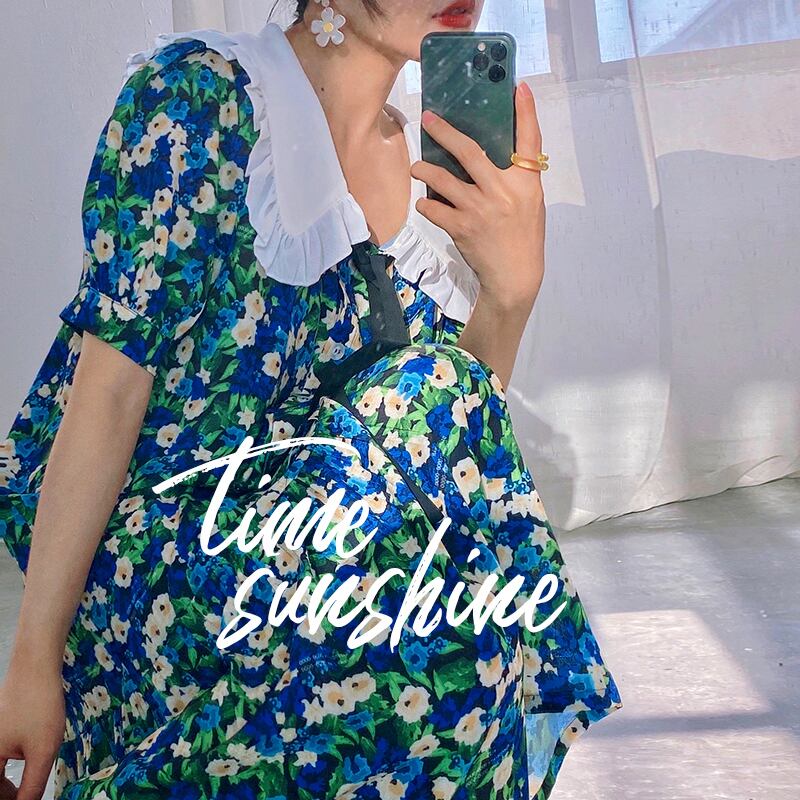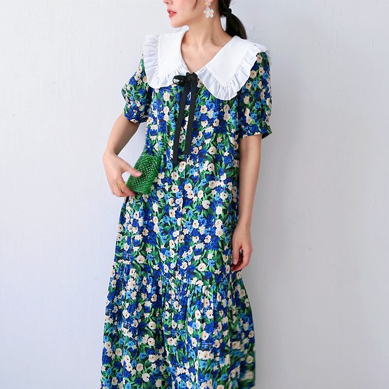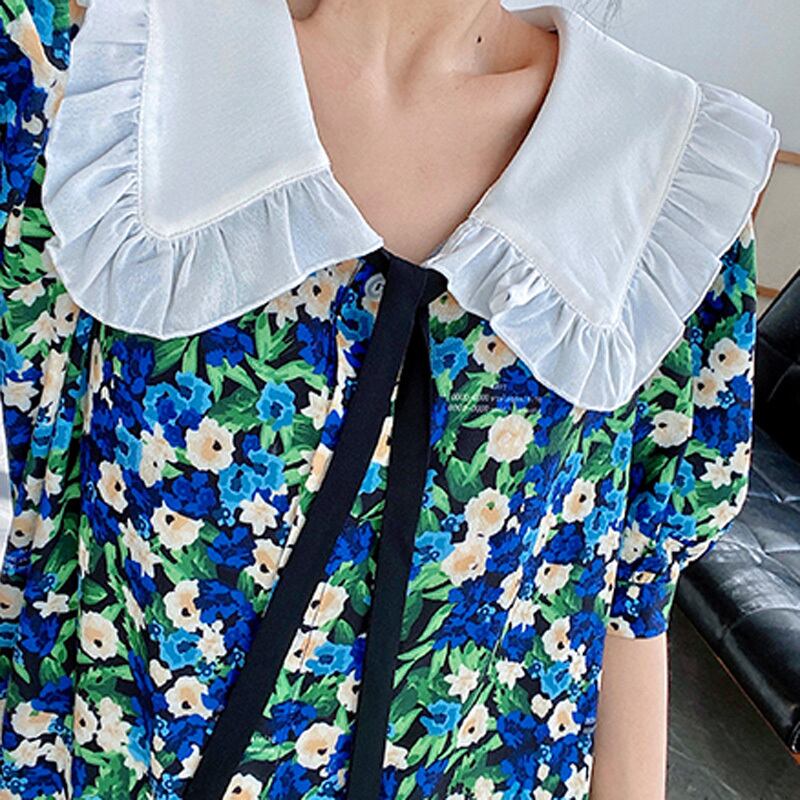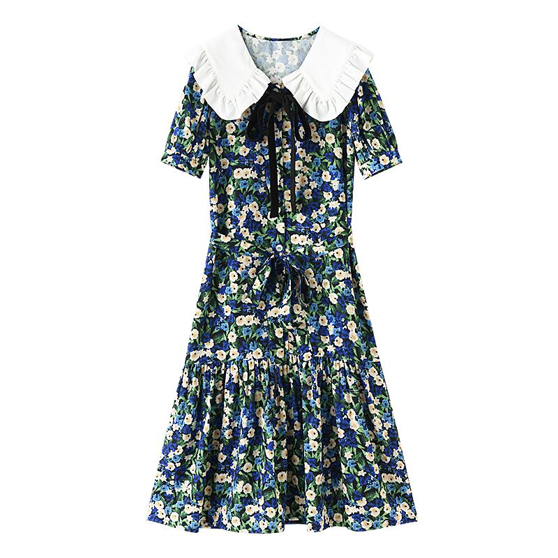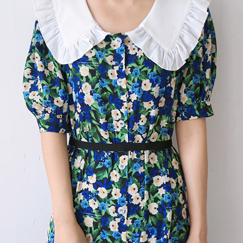 フローラル フリル襟 リボン 半袖 ワンピース *on219