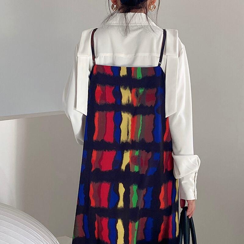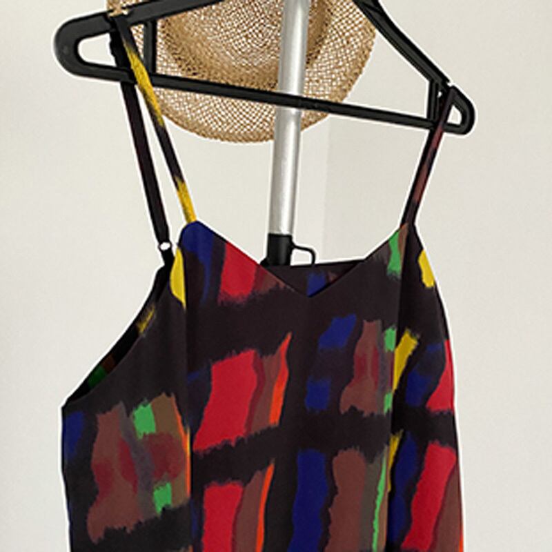 はっきりとした配色のアート柄が個性的で目を引くスカートです。
