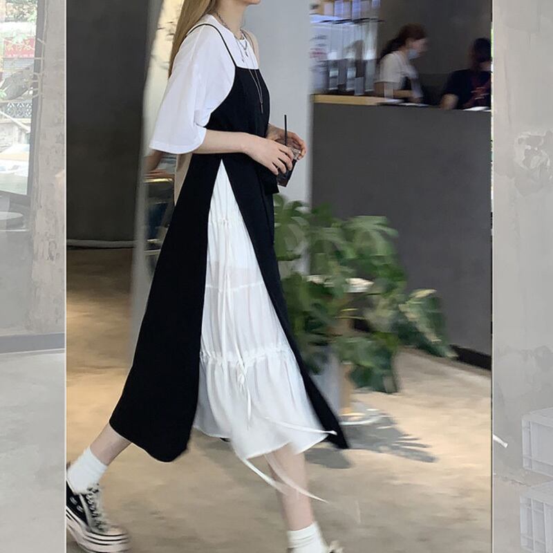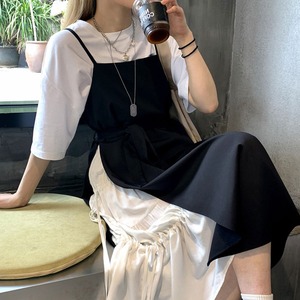 サイドギャザー サスペンダー ノースリーブ スカート *on224