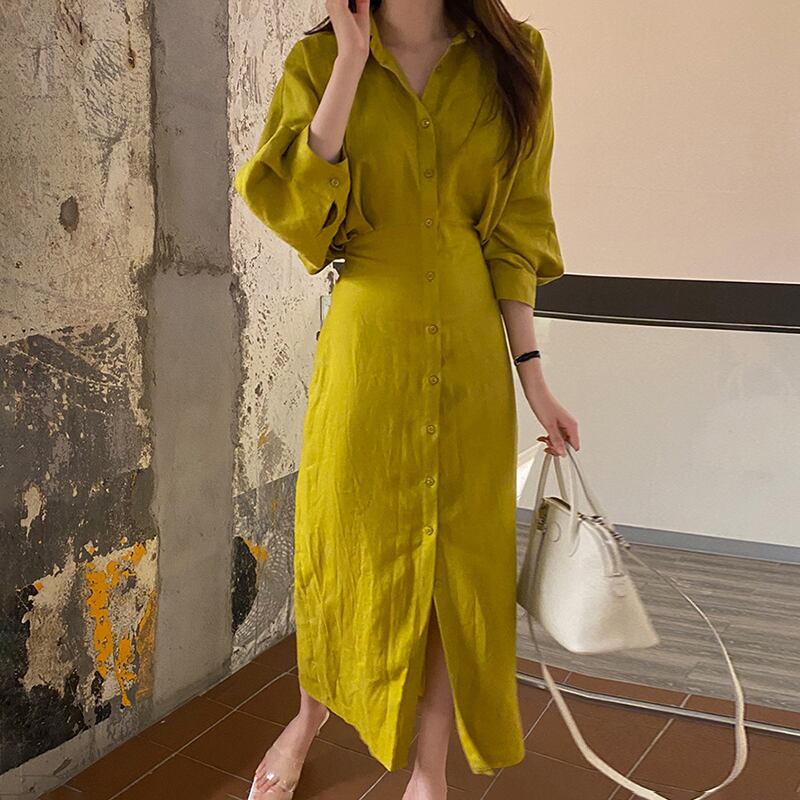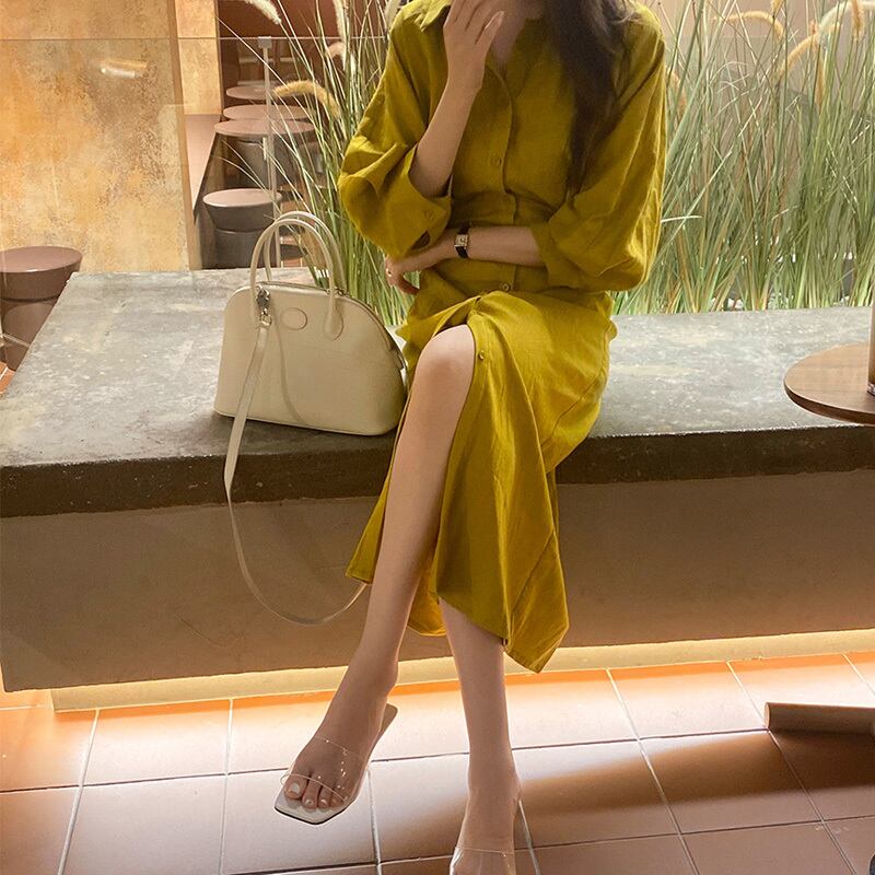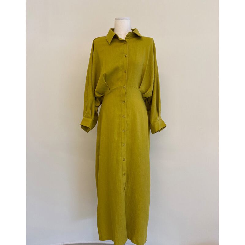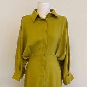 シンプル ボリューム袖 ロング シャツワンピース *on233