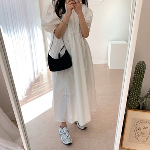2カラー パフスリーブ 半袖 ロング ワンピース *on240