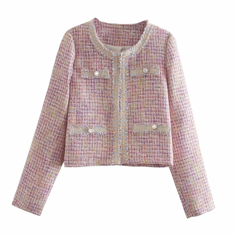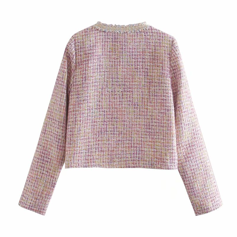 2カラー チェック柄 刺繍 ステッチ 長袖 ジャケット *ja039