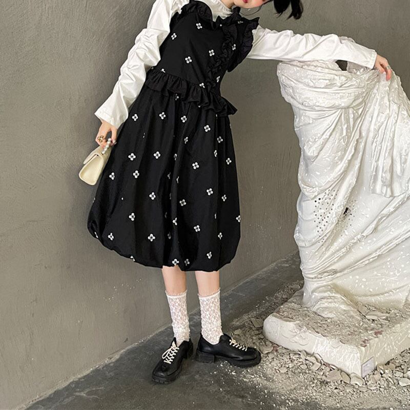 フラワー プリント フリル ノースリーブ スカート *on247