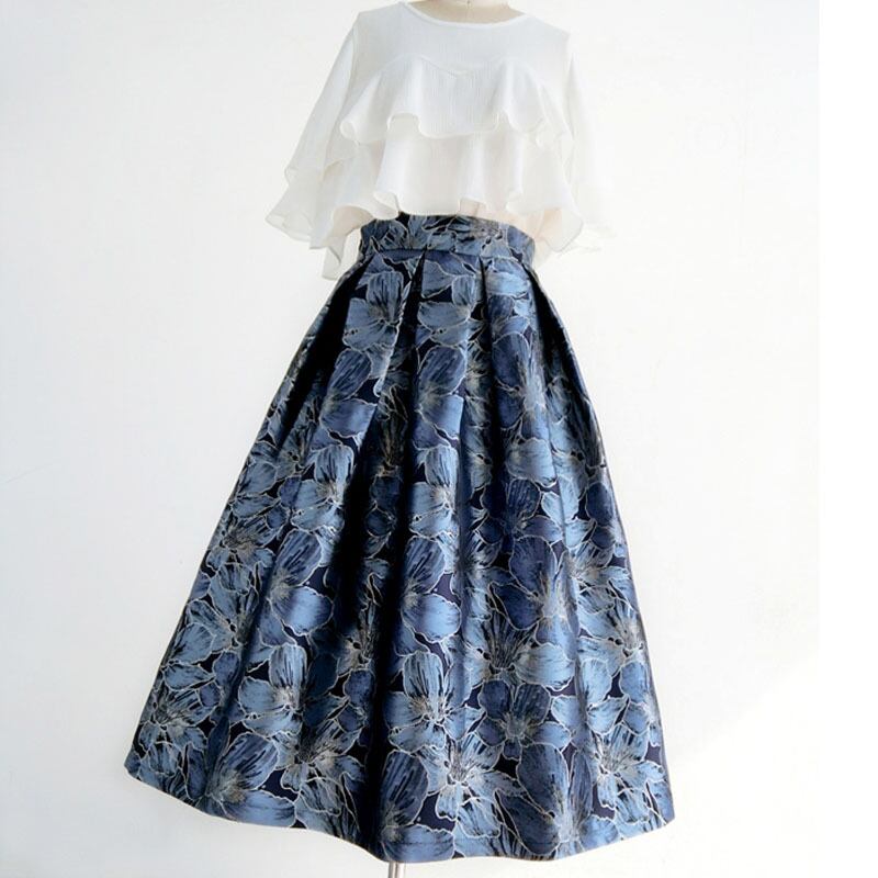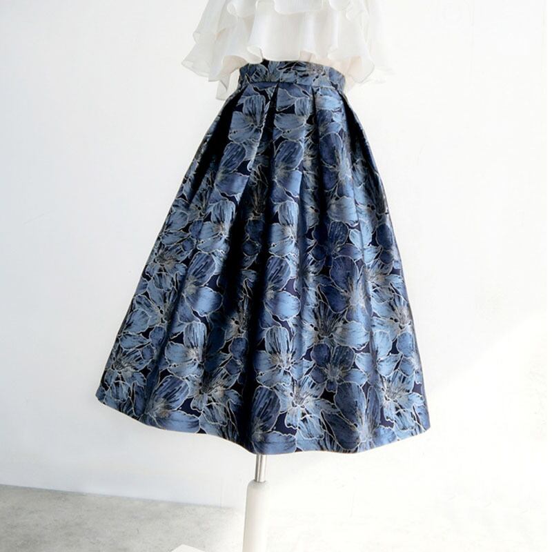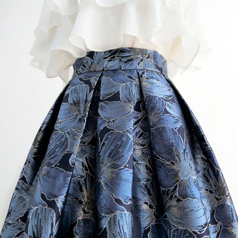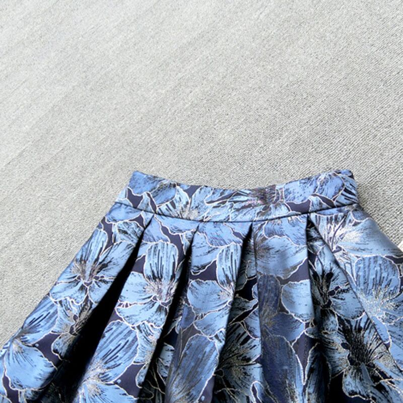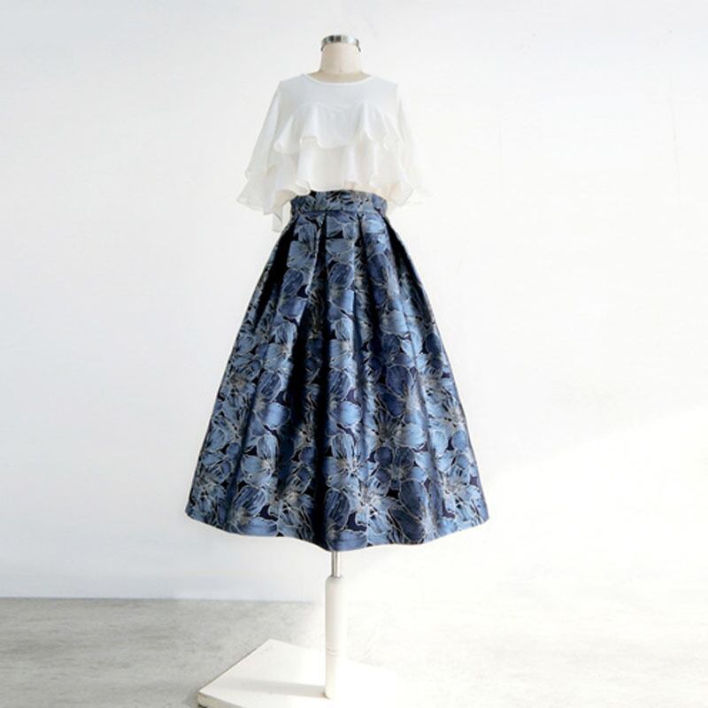 フラワー ハイウエスト ミドル丈 Aライン スカート *sk091
