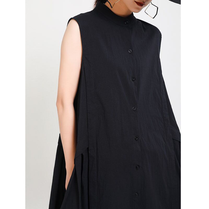 シンプルなノースリーブのシャツワンピース。