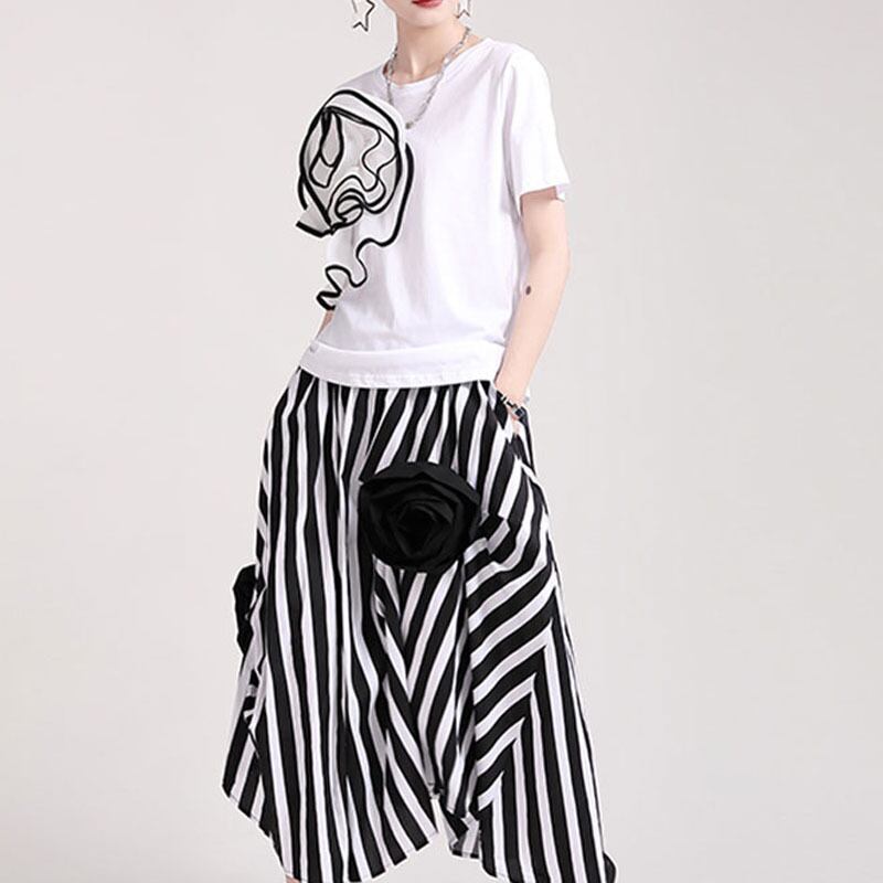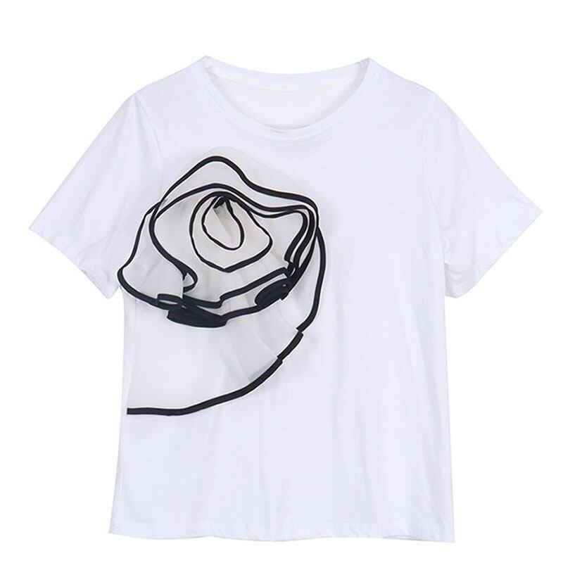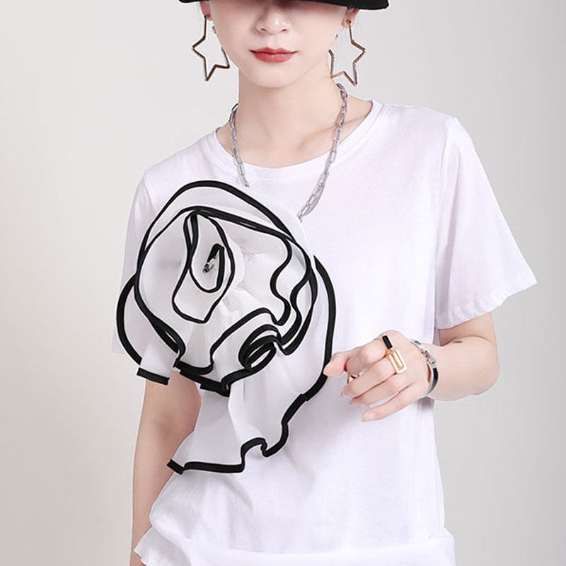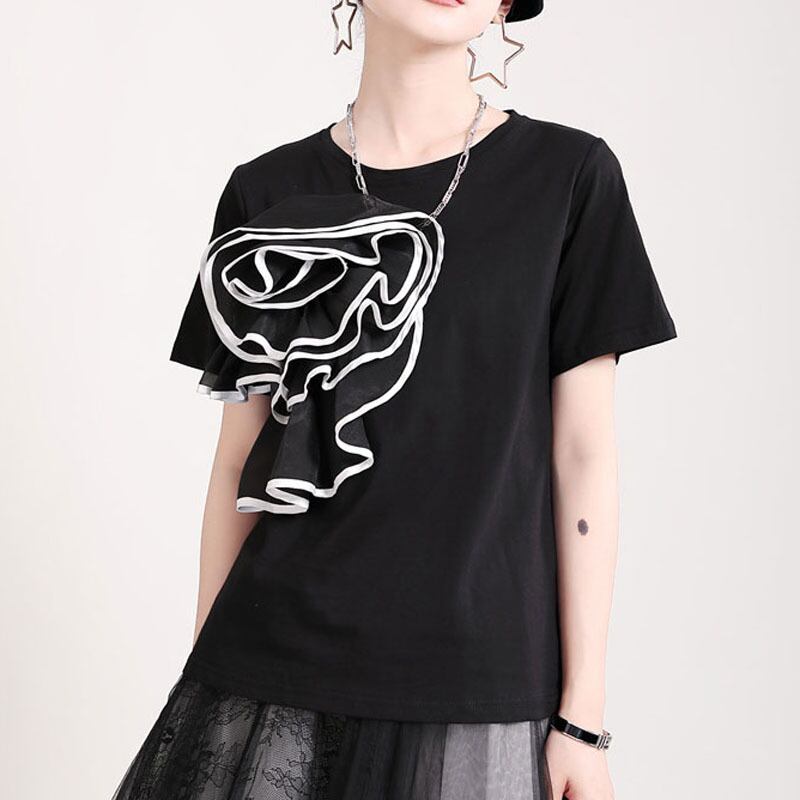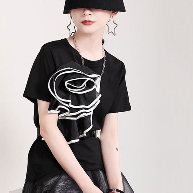 2カラー 立体 お花 半袖 シャツ ブラウス *bl214
