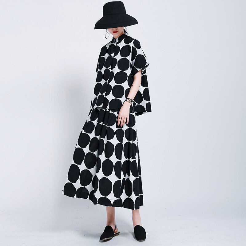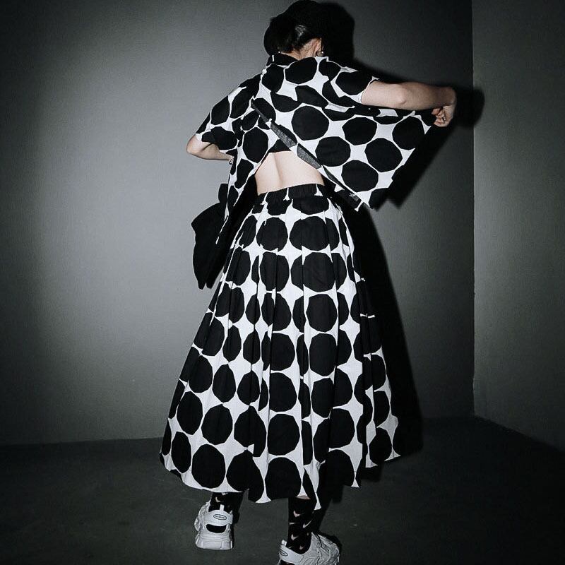 ドット柄 ハイウエスト スカート セットアップ可 *se042