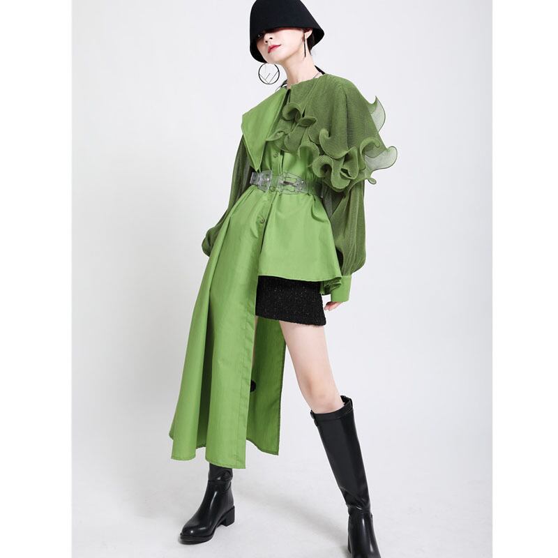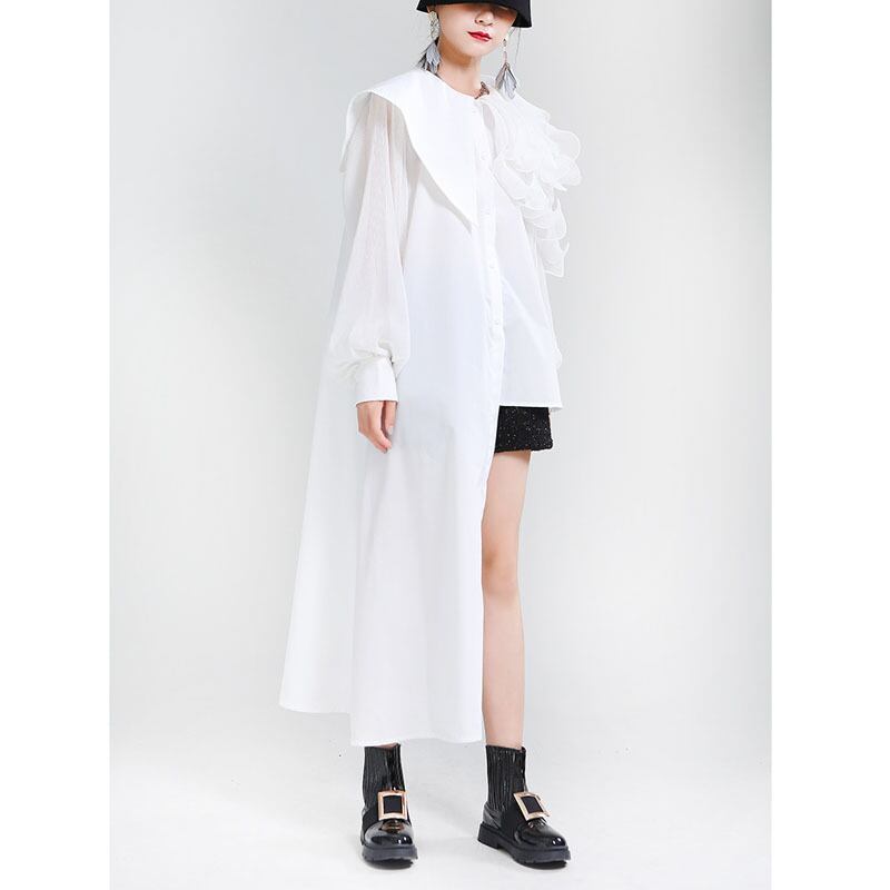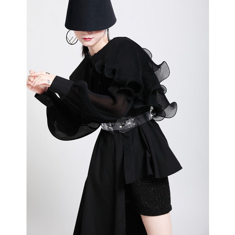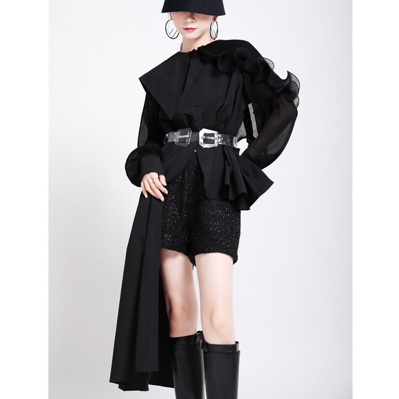 3カラー アシンメトリー フリル 長袖 シャツ ブラウス *bl216