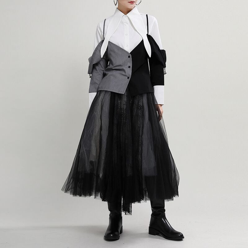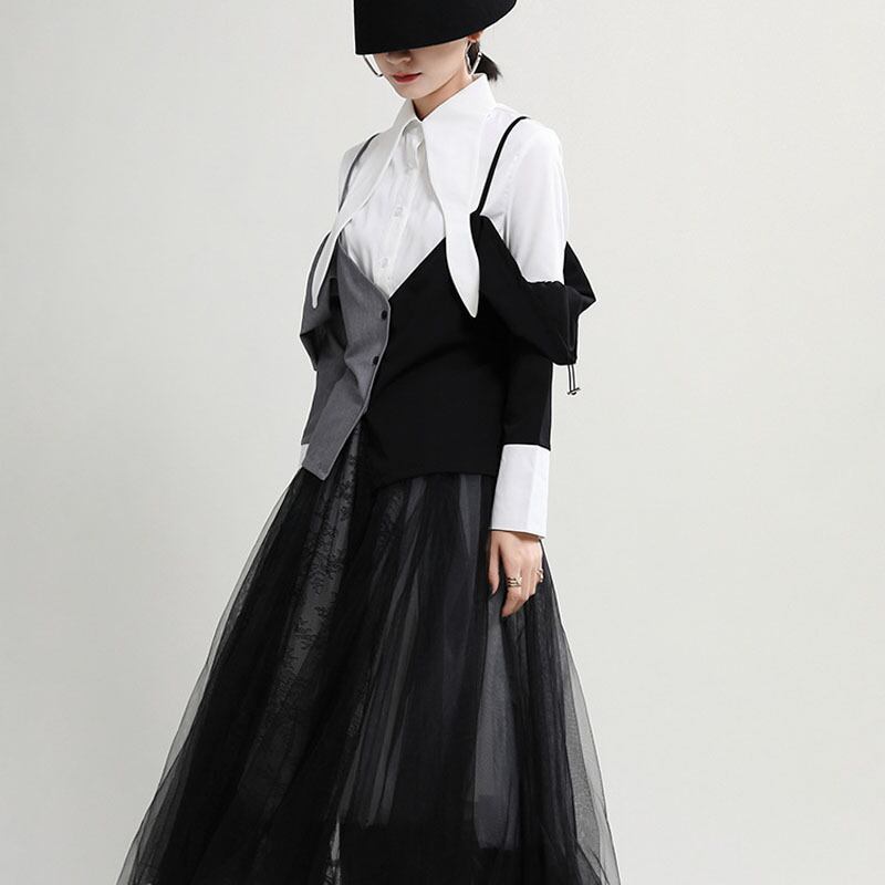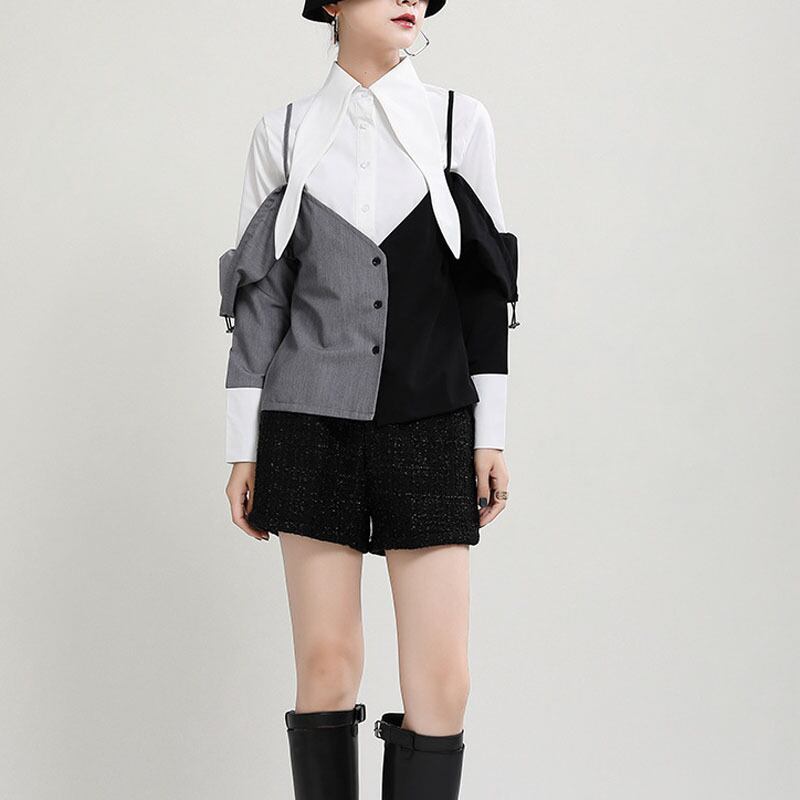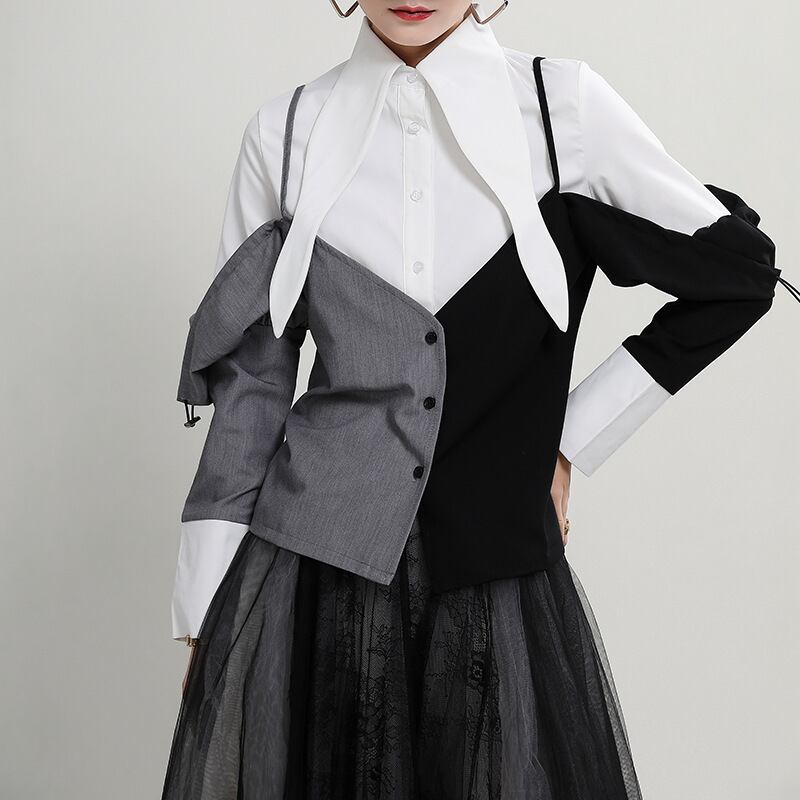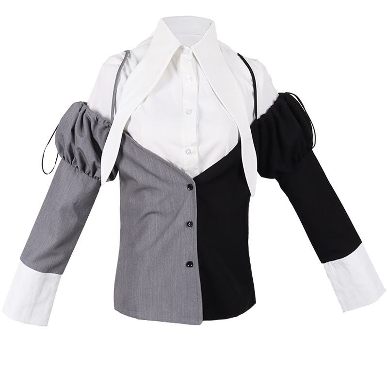 重ね着風 バイカラー 長袖 シャツ ブラウス *bl217
