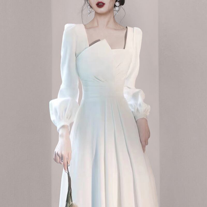 シンプル スクエアネック 長袖 ドレス ワンピース *on259