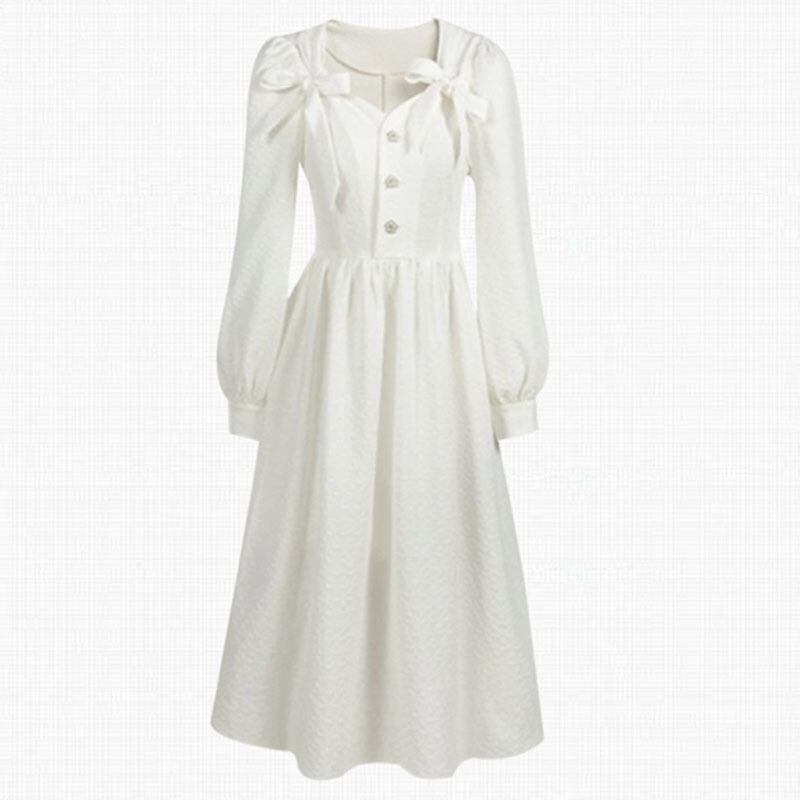 エレガント リボン 長袖 ドレス ワンピース *on260