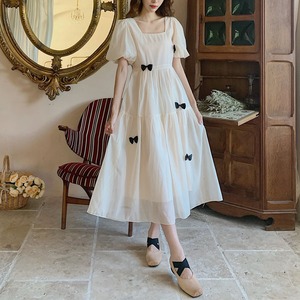 リボン スクエアネック 半袖 ドレス ワンピース *on262