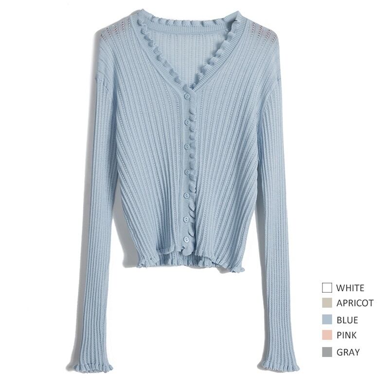 5カラー Vネック 長袖 ニット サマーカーディガン *ca050