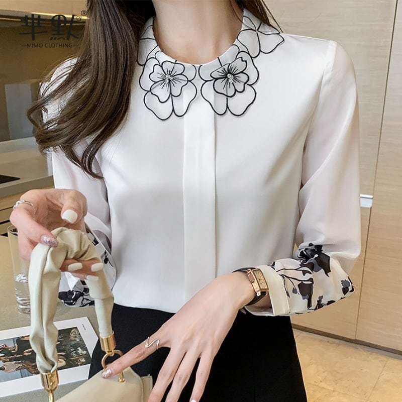 エレガント フローラル 長袖 シャツ ブラウス *bl220