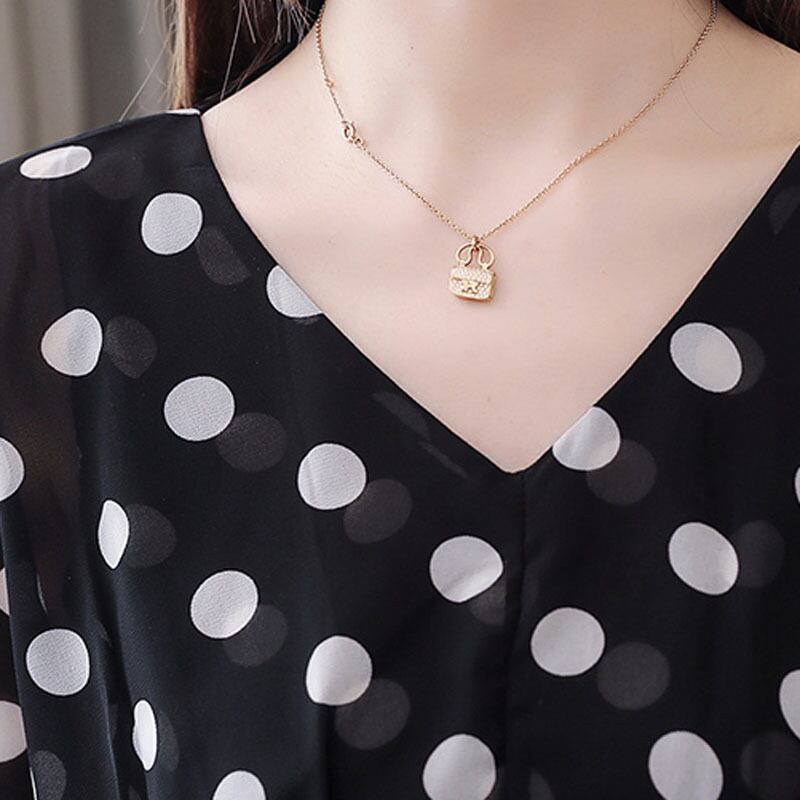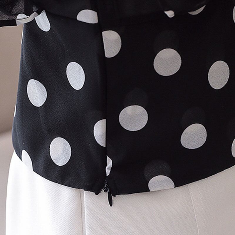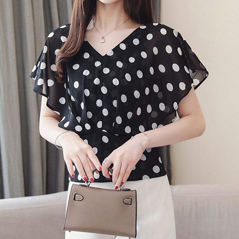 2カラー 水玉 シフォン Vネック シャツ ブラウス *bl222
